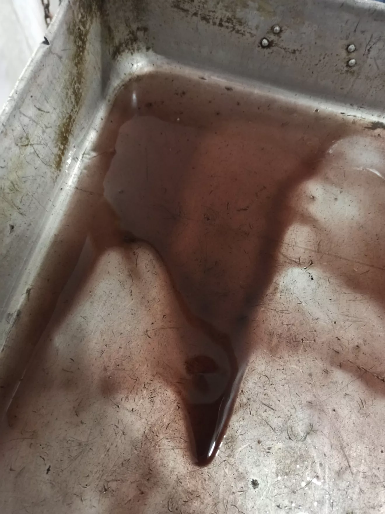 Далее слил масло с коробки. Если честно я тоже ожидал что оно будет светлее(краснее). По факту оно было коричневое. Но уже не воняло как при первом ТО. Слилось около 5л.