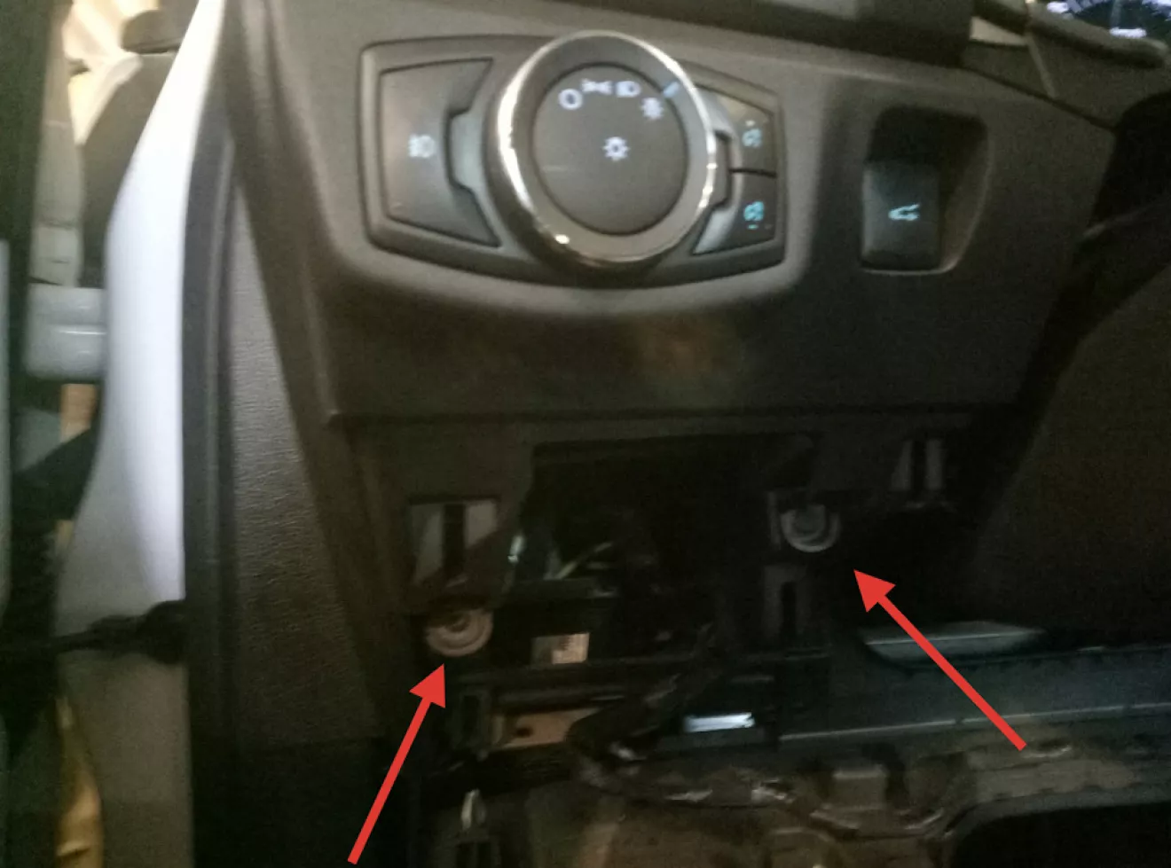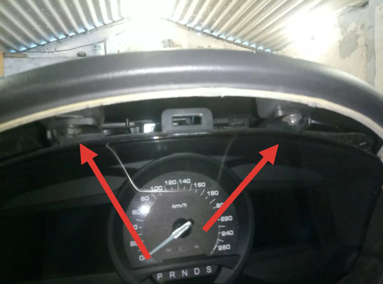 После этого откручиваем накладку приборки. Снизу ее держат 2 шурупа. Слева и справа от руля, и защелки сверху