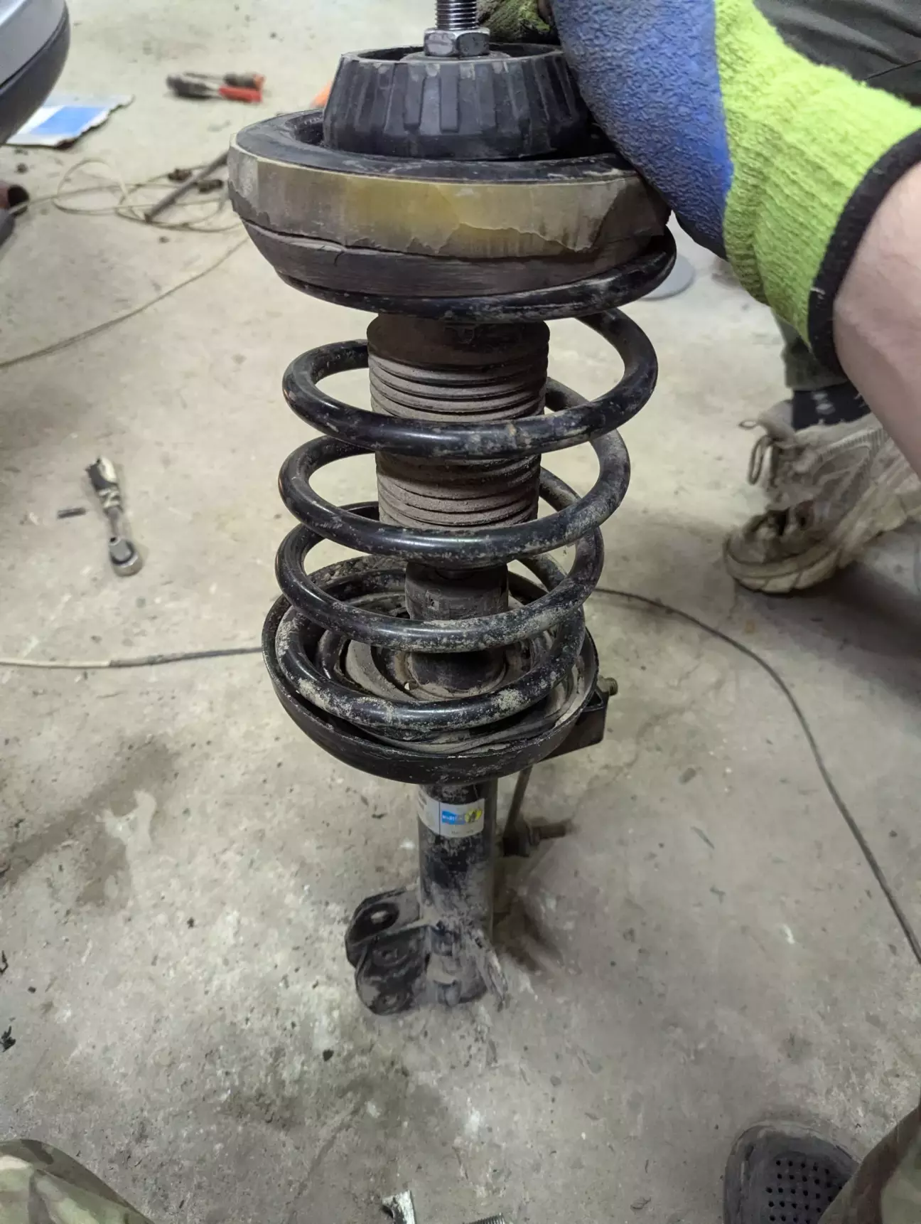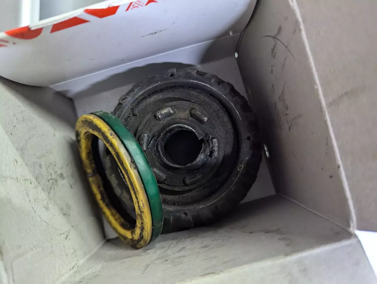 Ще з покупки авто моментами був скрип спереду з водійської сторони. На СТО діагностика нічого не показала, навідь заїжджав на вібро стенд. І саме в цей момент як на зло ніяких постороніх звуків не було. Їжджу мало але кожного дня і все більше починало мене це нервувати. По верхній тарілочці на лівій стороні зазор від стакана був більший, тому вирішив замінити опорні подушки разом з підшипниками. Хотів поставити Lemförder але в магазині в якому купляв запчастини їх навідь під замовлення не було. Тому що інші поставщики. По рекомендації продавця взяв Febi вартість з знижкою 2400 на обидві сторони. Міняв сам в гаражі. Проблем з заміною не було, одна гайка під капотом на стакані та два болта які тримають стійку внизу. Не забуваємо вікрутити стійку стабілізатора та відєднати від стійки гальмівний шланг та провід датчика ABS. Зняв стійку трохи стягнув пружину щоб відкрутити гайку і замінив. Мої обидві опори були вже погані, на лівій втулку повність вирвало та підшипник підклинював. Старі стояли FAG Canada. Ще коли зняв стійку побачив шо попередній власник заколхозив проставки. Зібрав назад поки їх не знімав хоча в майбутньому можливо і викину їх. Також цікавить ваша думка про такі проставки. Ще чекаю нові стійки та втулки стабілізатора тому що не подобається занадто їх мягких хід.
