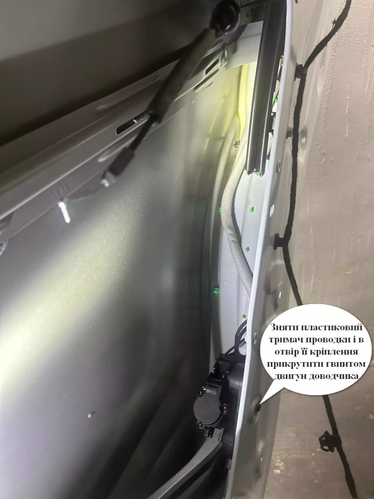 - для закріплення доводчика необхідно витягти пластиковий тримач проводки (проводка йде не як в передніх дверях зсередини а ззовні);