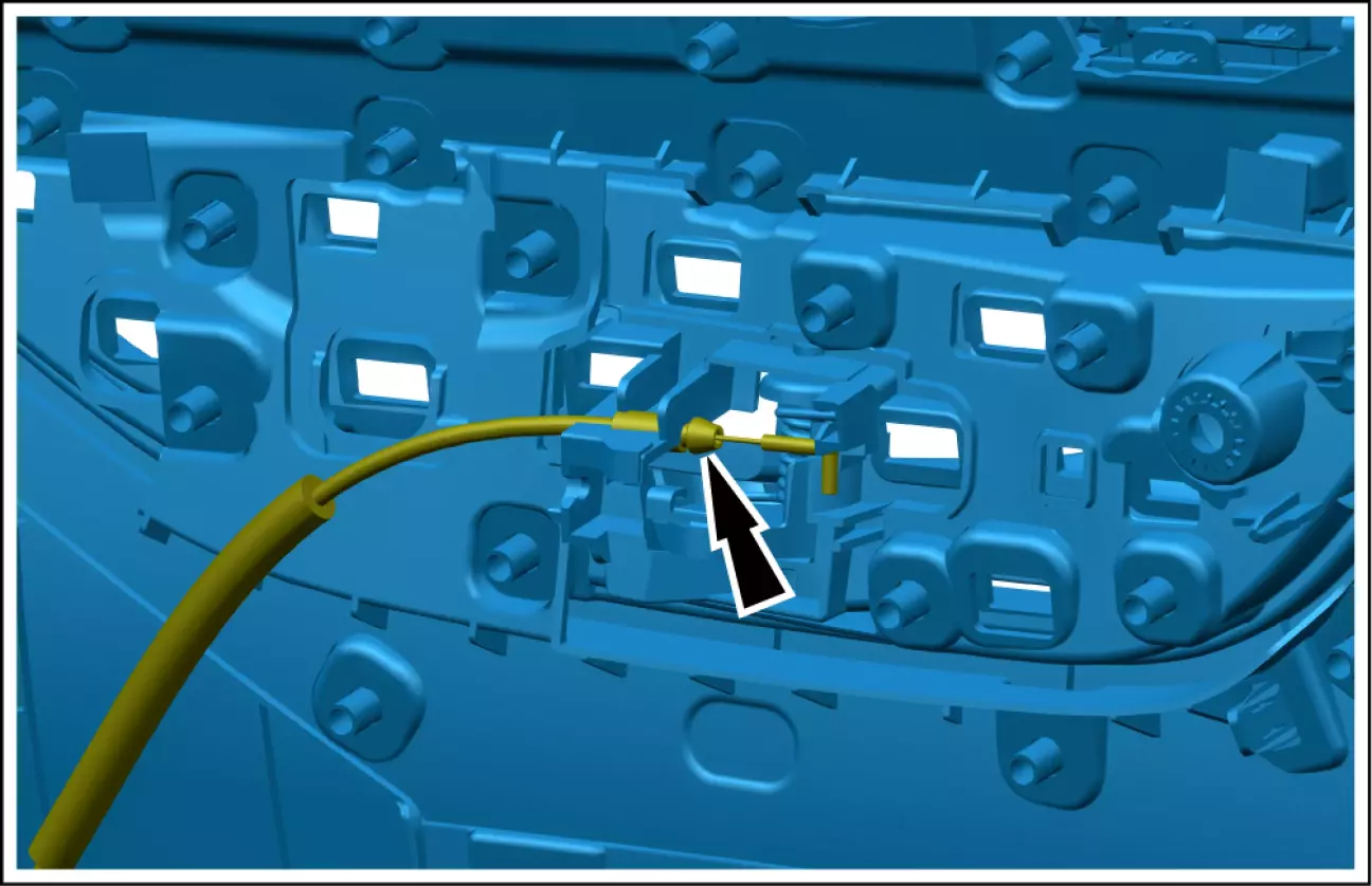 - для доступу до з’єднувальної гумової гофри пасажирської двері – зняти бардачок (тримається на двох бокових фіксаторах які потрібно провернути на 90 градусів і витягти всередину бардачка та зняти фіксуючий відкриття поводок);