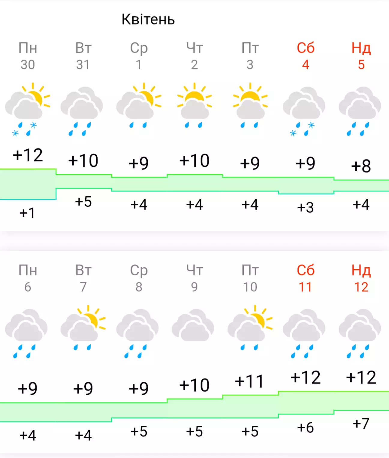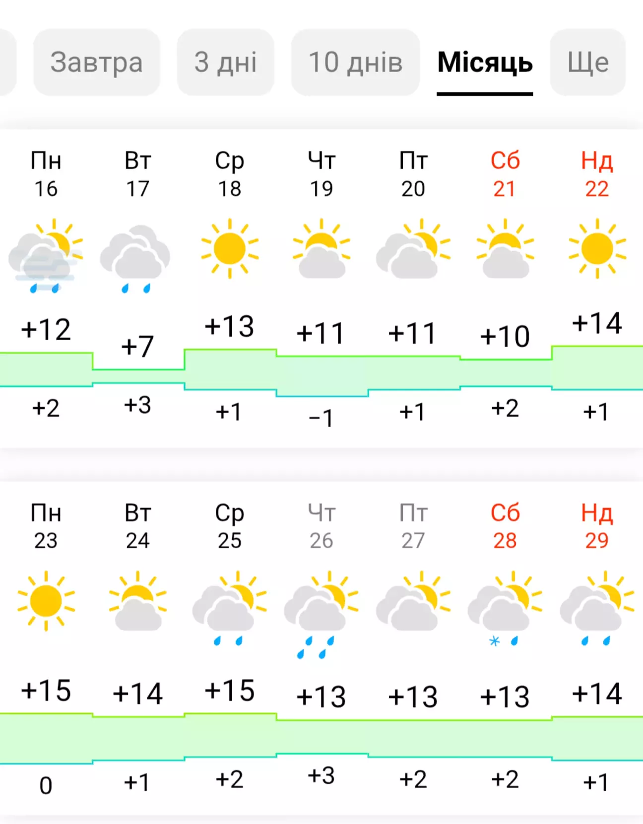 Отже погода на місяць вперед не обіцяє, начебто ніяких сюрпризів, морозів та снігопадів.