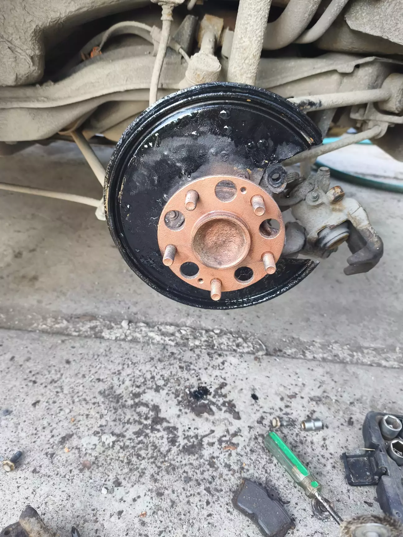 Гальмівні доречі єлі збив, шурик та щітка в поміч, почухав ступицю та замазав мідяхою, гірше не буде