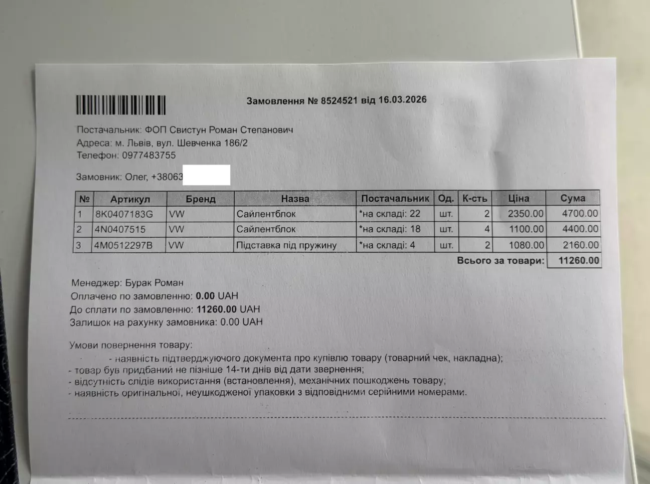 Закупив усі запчастини, взяв все по оригіналу. Запчастини беру у Perfomance Part Shop, знаходяться вони за готелем НТОТ. Дуже рекомендую їх, завжди все є в наявності, по ауді все підкажуть і підберуть, хороші ціни, завжди оригінал і просто величезний вибір всього. По заміні сказали 1 день роботи, тому зранку загнав і вже вечором забрав авто.