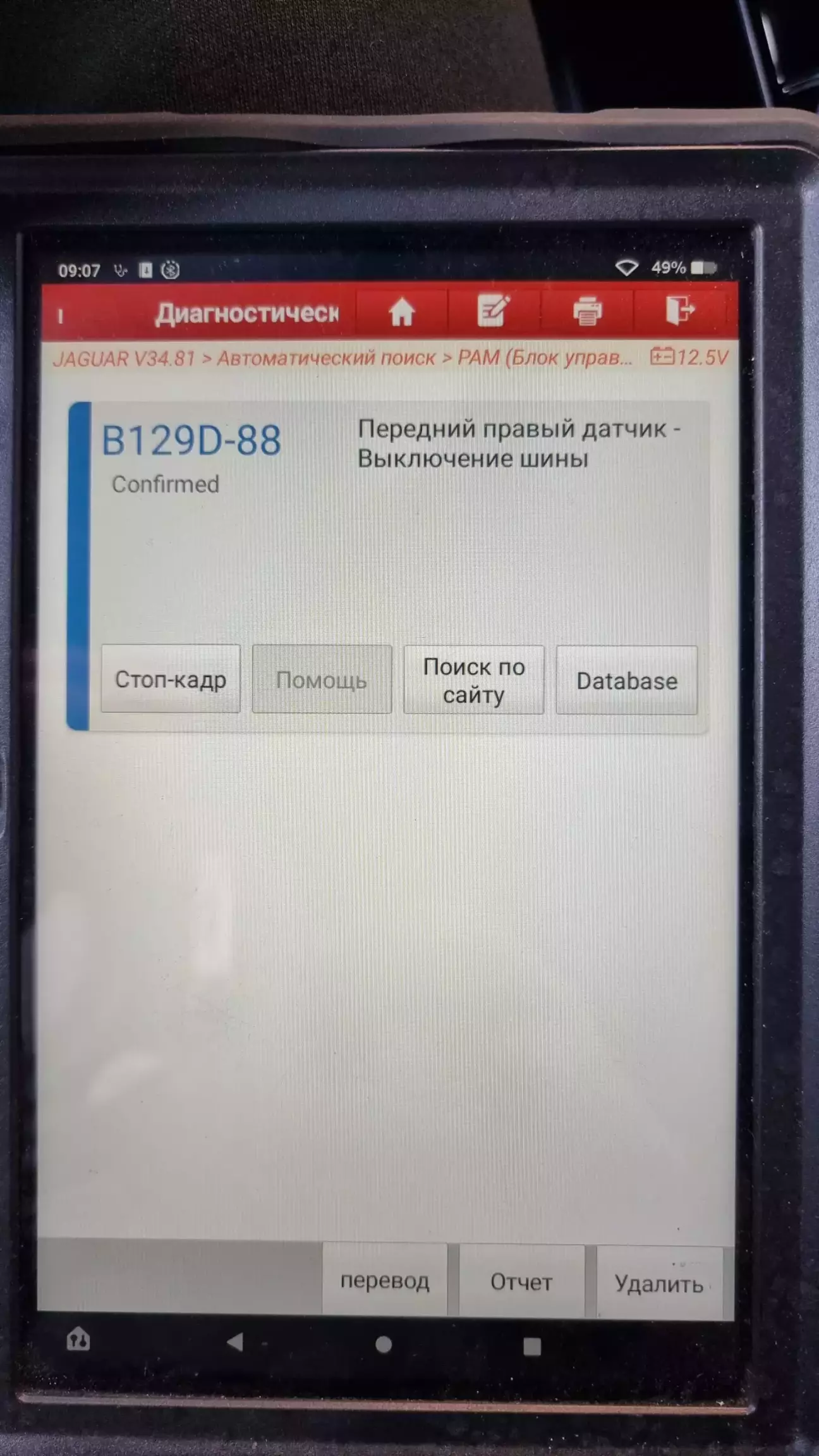 Нещодавно трапилась невеличка несправність, перестала працювати система парктроніків. Підключив діагностичний прилад, виявив помилку p129d-88, яка розшифровується як: передній правий датчик вимкнення шини.