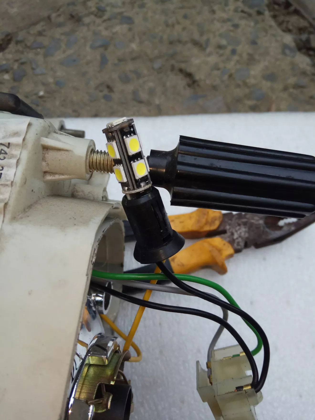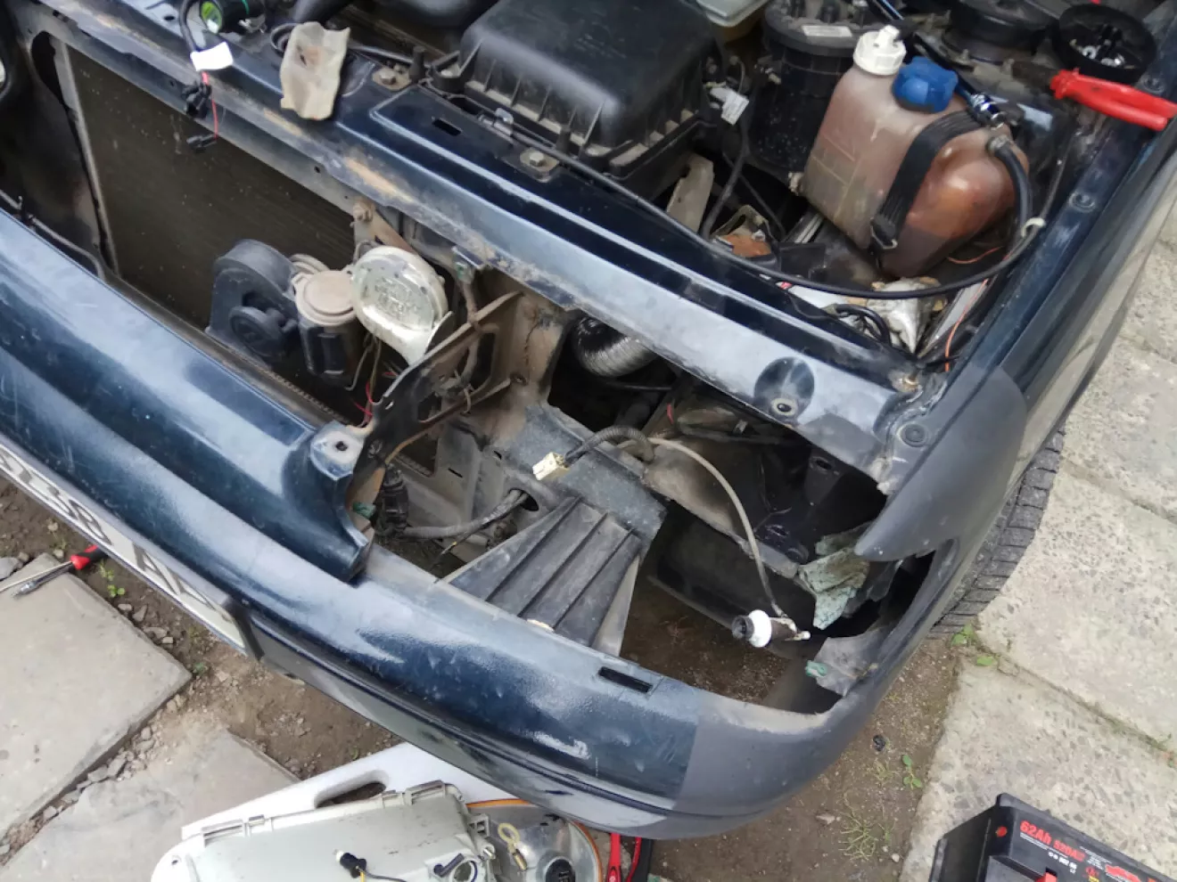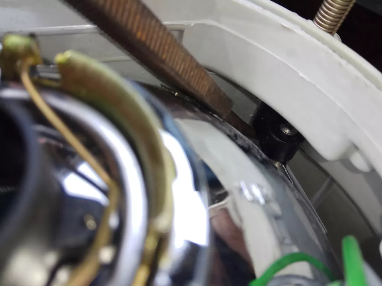 Сьогодні їдучи з роботи, так як дружина зранку просила заїхати в магазин. Підїхавши до стіни замітив що ліва фара не світить, тим часом на мій мобільний прийшло повідоплення з НП що прибула посилка з м. Харьків з компанії "INTERTOOL" з набором інструменту ЕТ-6094. Придбавши все що просила дружина поїхав додому. Вдома почав шукати причину несправності, ним виявився блок розжигу ксенону, але це не все коли я хотів замінити Led габарит на новий, помітив що відбивач фари двигається сам по собі вперед та назад. Яке в мене було здивування коли я побачив що відбивач зіскочив з кріплення регулювання, прийшлось знімати фару, токож було виявлено несправність лівого коректора фари через злам штоку. Знявши фару знайшов старий напильник та ним як ричагом вдалося закріпити відбивач фари на технологічне місце, так як коректор несправний, я розігрів малий саморіз та вкрутив в корпус коректора попередньо взявши розмір з правої фари.