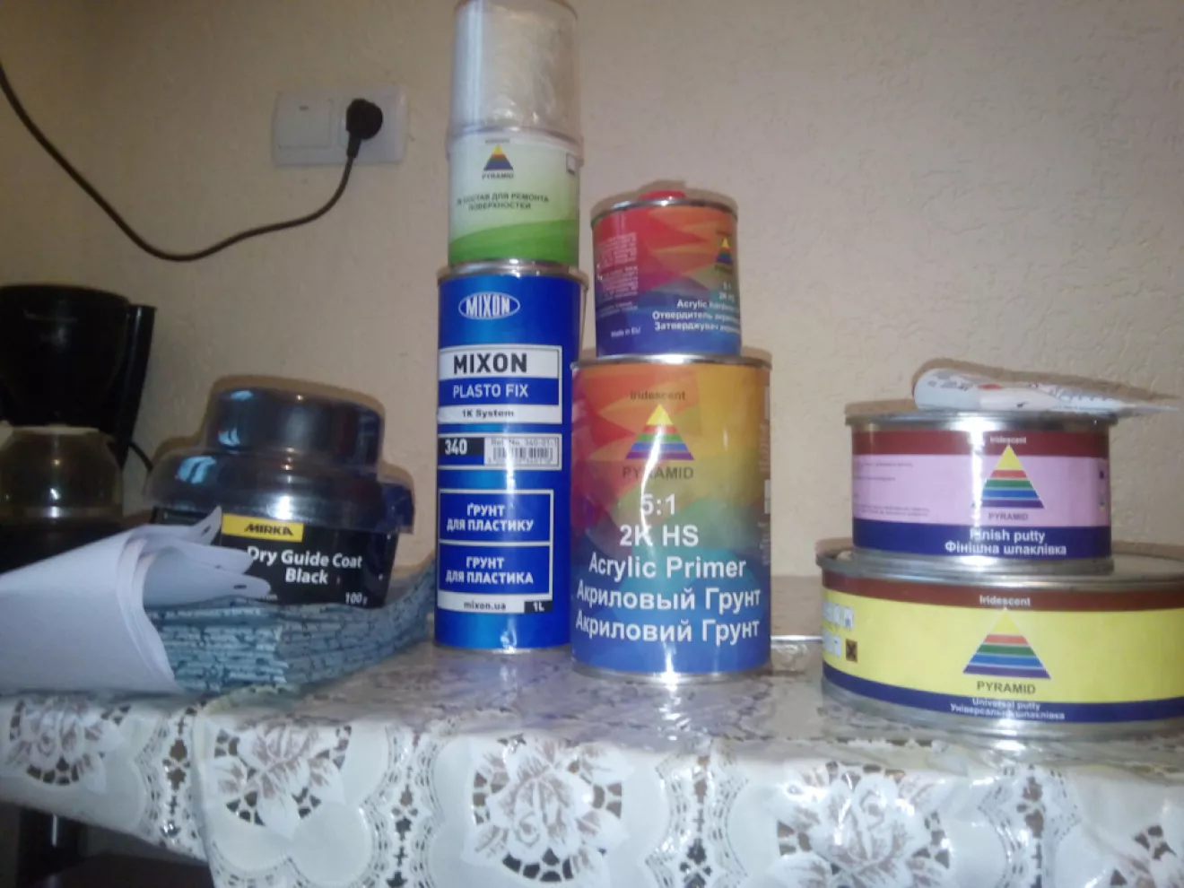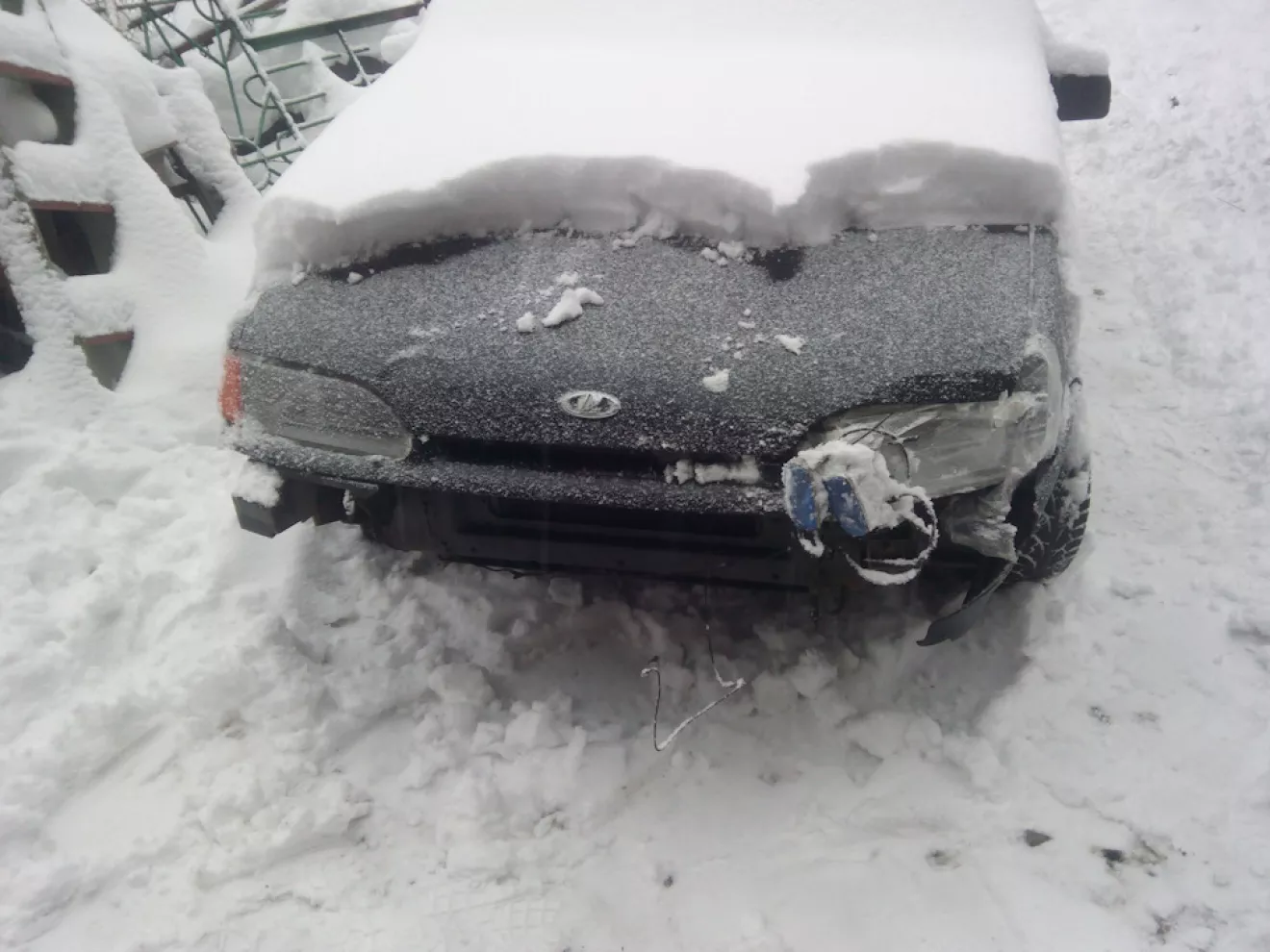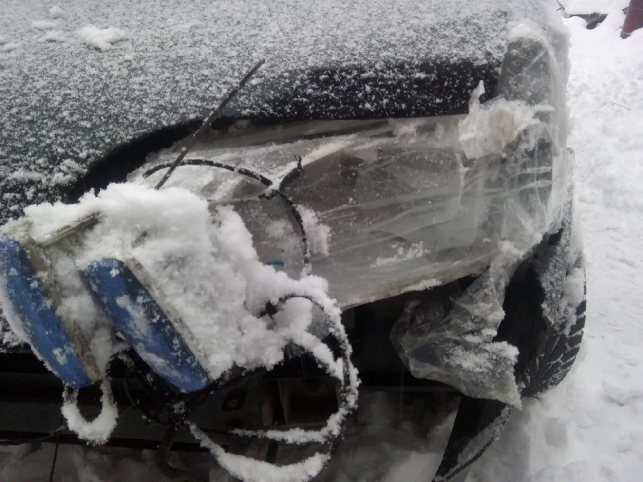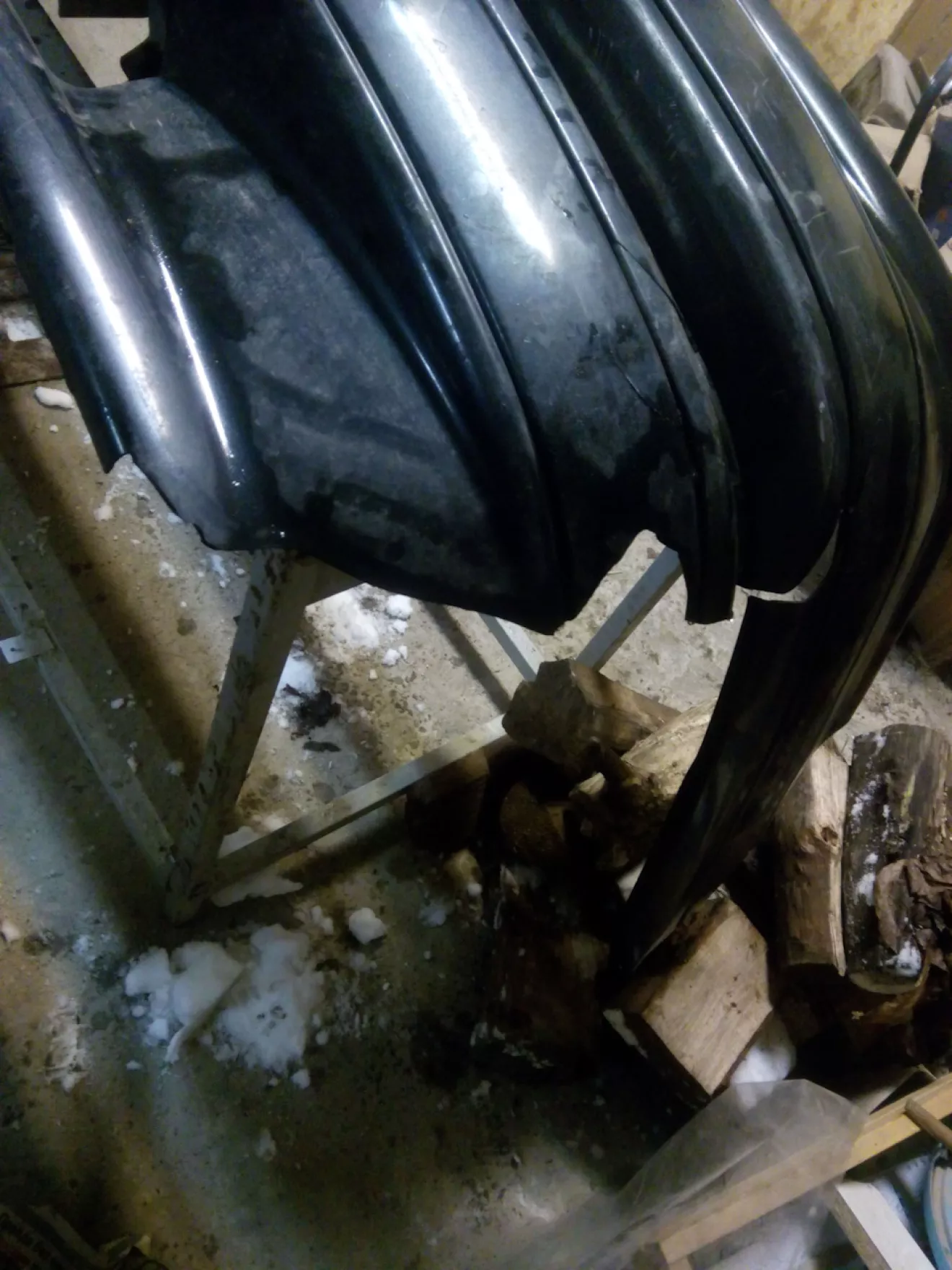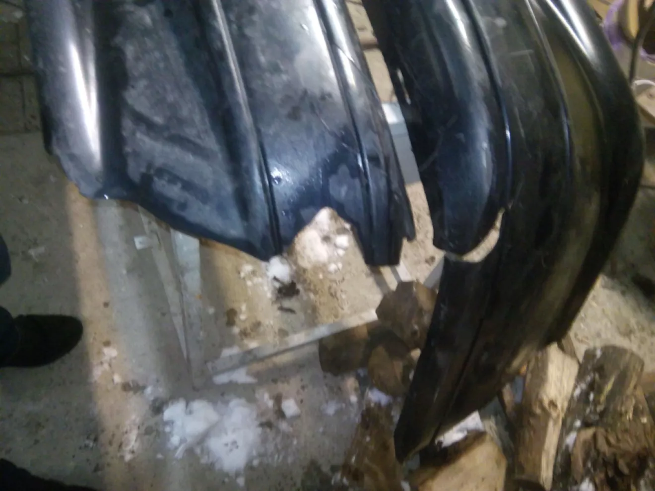 Я вже вдома в Мукачеві, бо ДТП сталося в Львівській області, фара була заклеєна скотчем бампер підв'язав проволкою так і доїхав додому. Сьогодні зняв залишки бамперу з машини та дістав в товариша бампер який тоже був пострав ДТП але не так сильно як мій. В свому гаражі затопив булерян поставив бампера щоб грілися, також закупився матеріалами для відновлення та зі свого бампера нарізав частинки для заплавки бамперу що дав мені товариш.