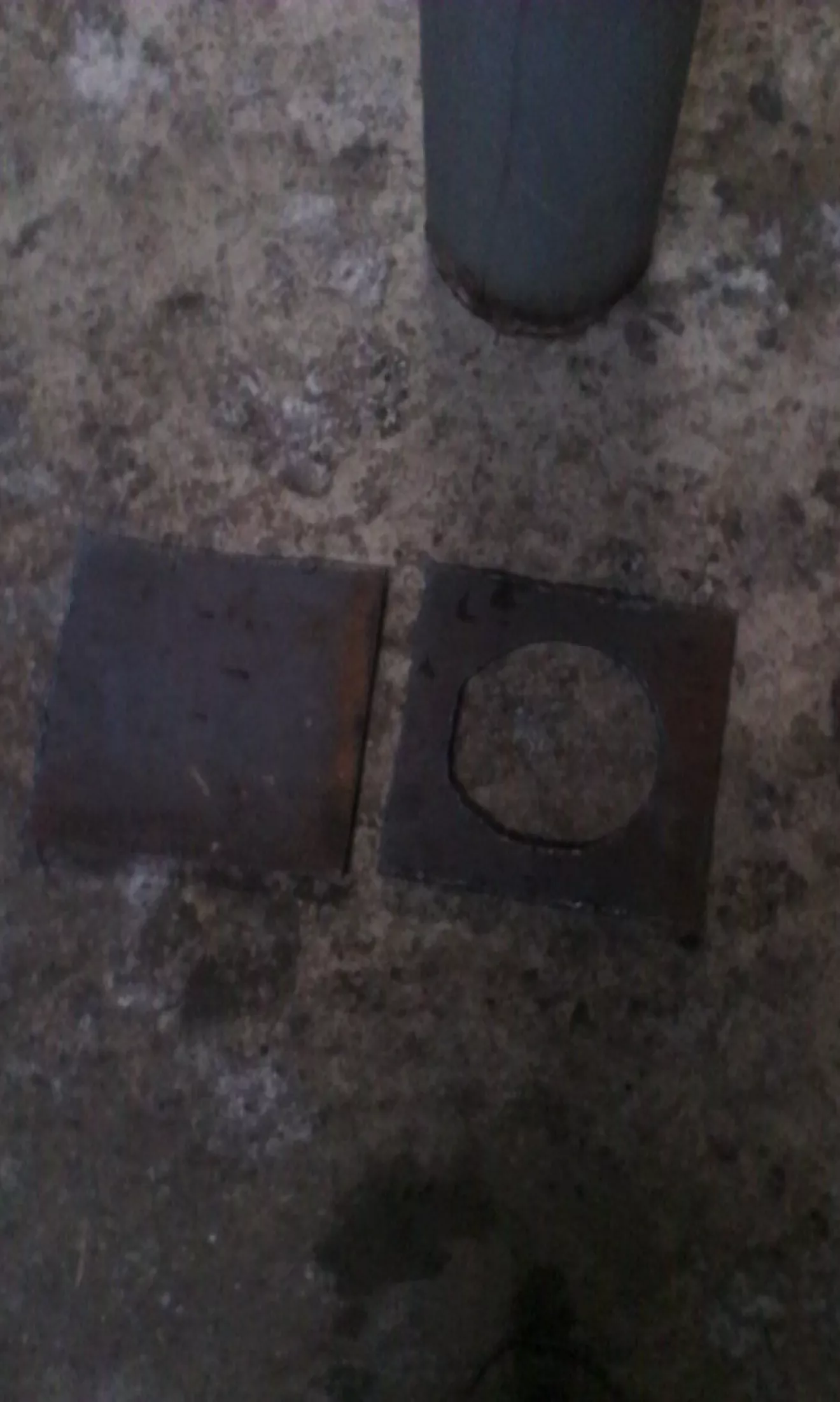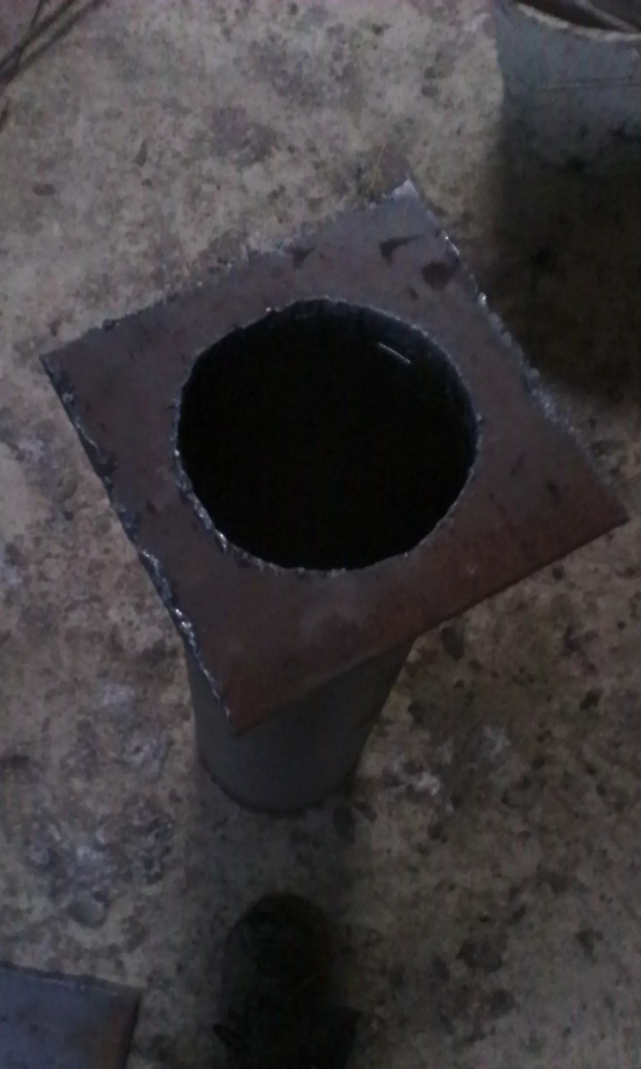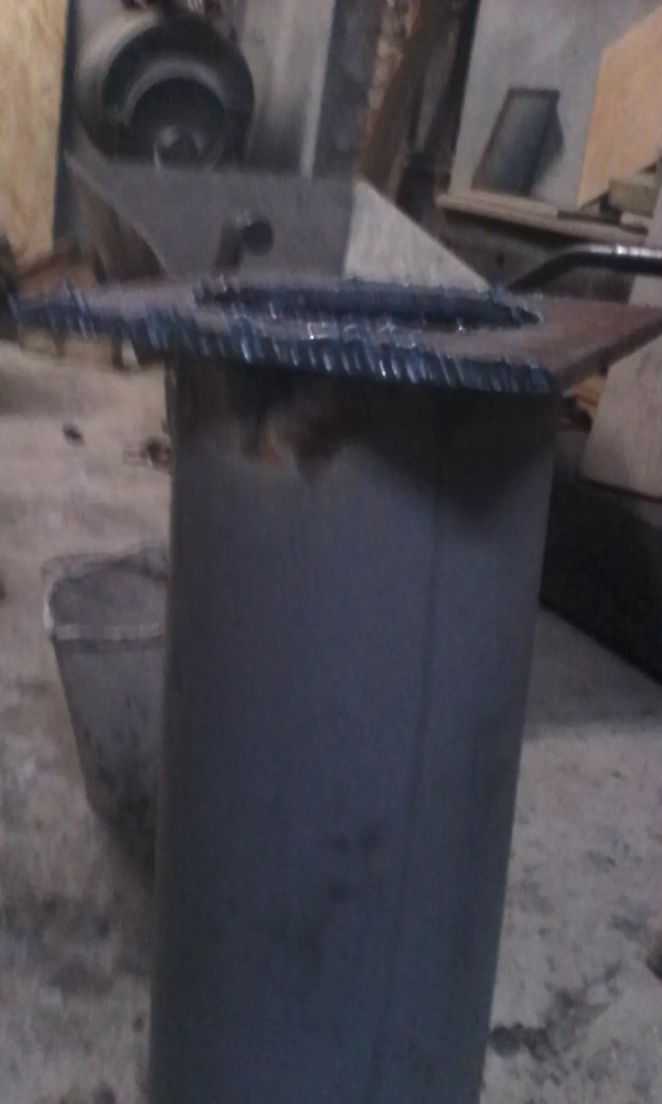 Десь приблизно 2 місяці назад мені попалася труба 150мм, так як давно вже хотів зварити під свій компресор влаговідділювач, за невеликі кошти купив кусок труби приблизно 70см, сьогодні на роботі сварщик вирізав мені з 20мм металу дві пластини в одній з них видув мені заглушку на низ труби в якій в подальшому буде приварено кран для зливу конденсату, а зверху буде зроблено з пластин фланець для того щоб можно було зробити ревізію влаговідділювачу, всередину труби планую закласти мідні трубки. Прийшовши з роботи заварив низ труби заглушкою, завтра планую приварити фланець.