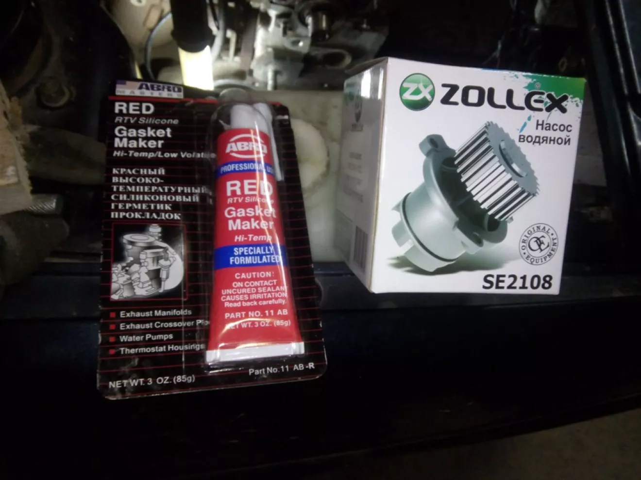 23 грудня заходжу до гаражу і дивлюся під машиною калюжа. Відкрив капот побачив що в розширітельному бачку відсутній тосол, а зі сторони помпи каплі тосолу. Долив тосол завів з помпи почало текти, але не довго поки машина не нагрілася до 40 градусів, так я проїздив до поки не прийшли запчасти з сайту "Деталі.зп.юа". Також я замітив що в мене розірвало лівий пильник шруса, також під заміну. Пильники заказав поліеуретанові.