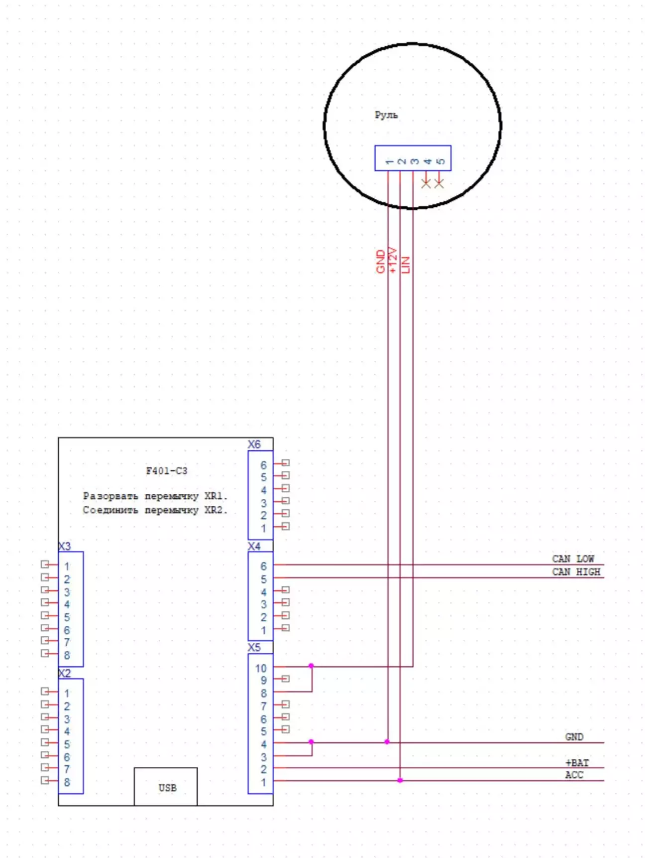 І отримую від Юрія схему підключення до машини для мого випадку: