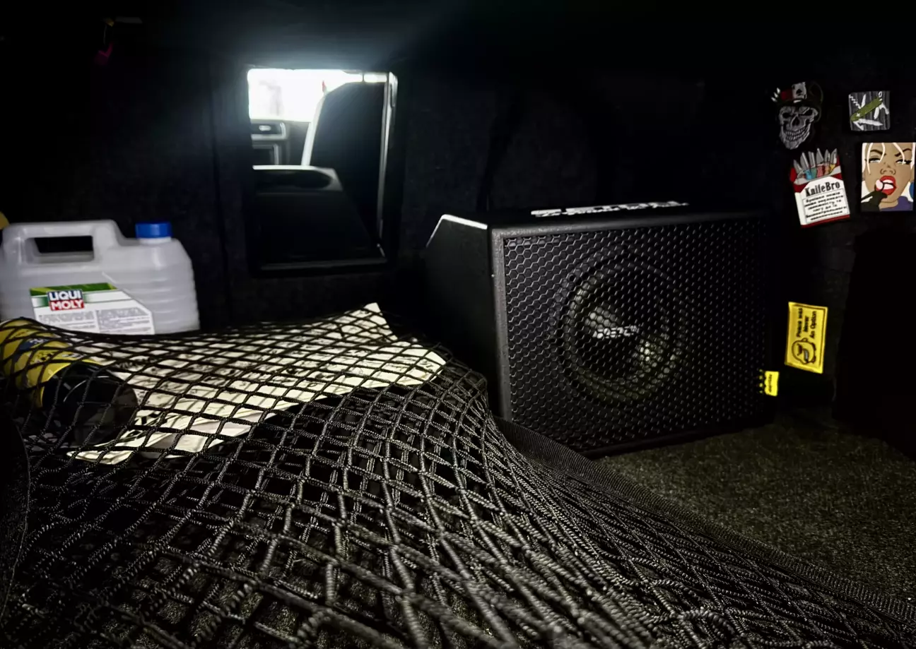1. Повна максимальна шумка, включно з дахом і підлогою. Особлива увага на полку багажника. Додатково зашумлений сток фендер саб віброю+оббитий чорним карпетом.