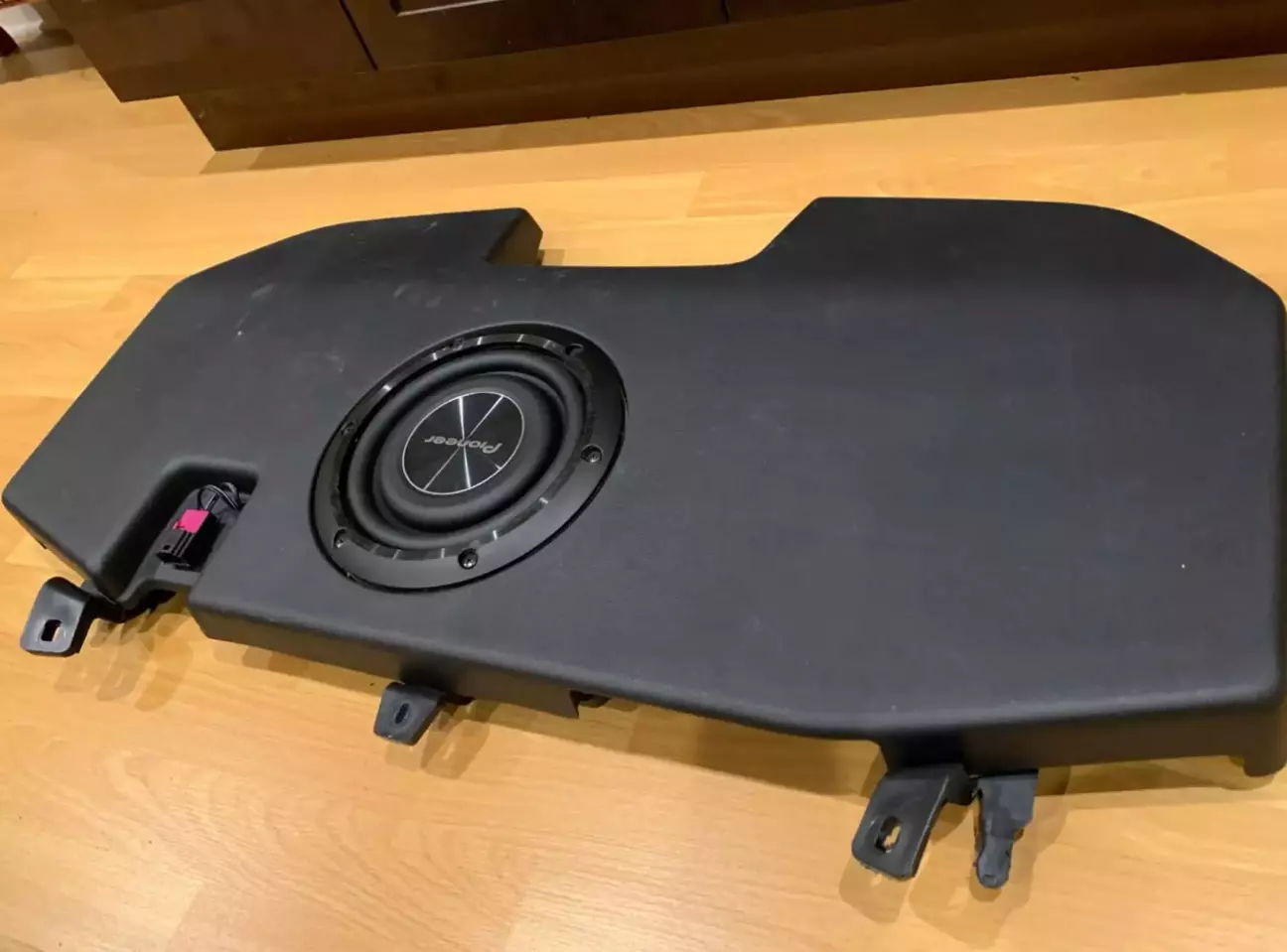- Короб штатного сабу з пластику. Як не крути, вивчаючи ТТХ саб динаміків розумів, що цей короб ну ні як не підходить щоб розкрити потенціал. Банально мало обєму і сама конструкція, крч буе.