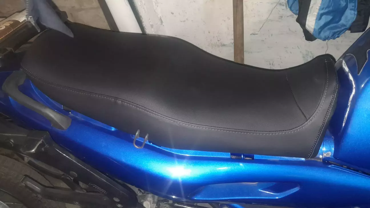 Стара сідуха вже потріскалась, знайшов спеціаліста який адекватно перешиє. Вже з мотогрупи шили в нього, бачив результат, це важливо, щоб не зіпсували. Ось результат: