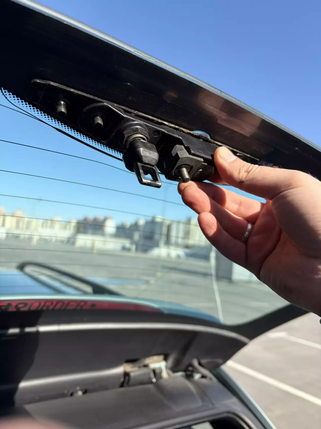 Потом нужно кнопку вытянуть вверх и открутить механизм дворника, он держиться на нескольких гайках.
