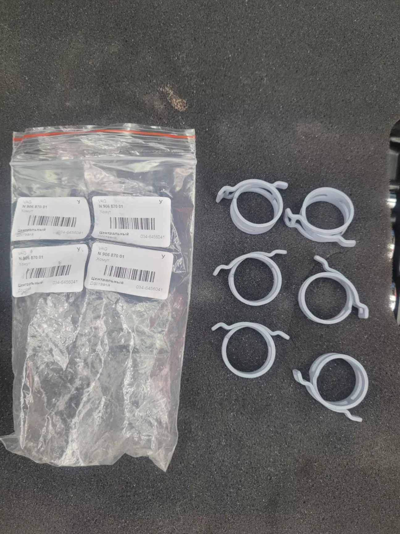 Замінив хомути на "правильні" пружинні, вони ж самозажимні. Вибрав по-багатому, VAG N 906 870 01