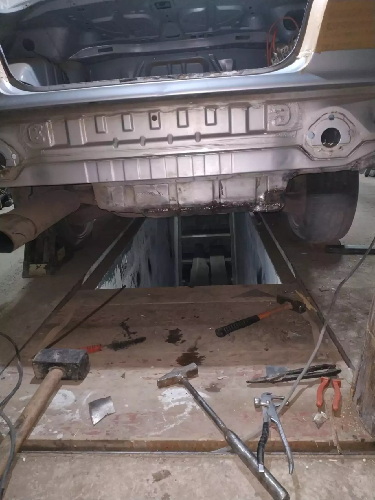 По третє саме болячне місце в цих машинах це ніша акумулятора, вирізаєм і викидаєм, і так як друзі поляки колись поставили газ в місце під запаску і вирізали там дирку то цю нішу прийшлося так само різати і рятувати, а раз уже ці місця ріжуться то прийшла геніальна ідея зробити собі ЕЕЕЕЕМММММ 5
