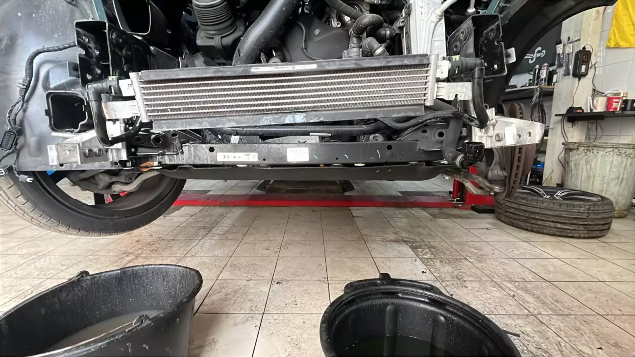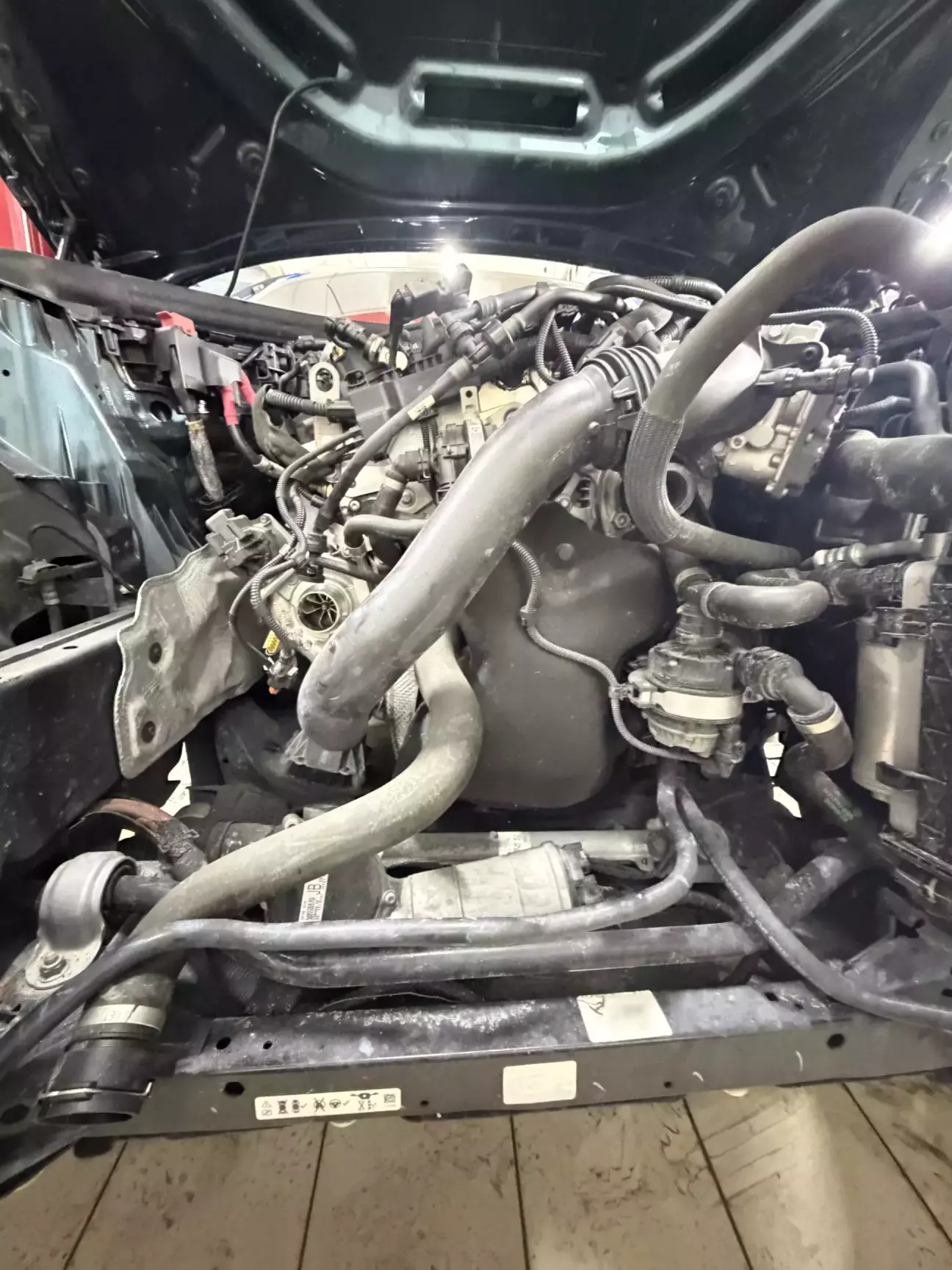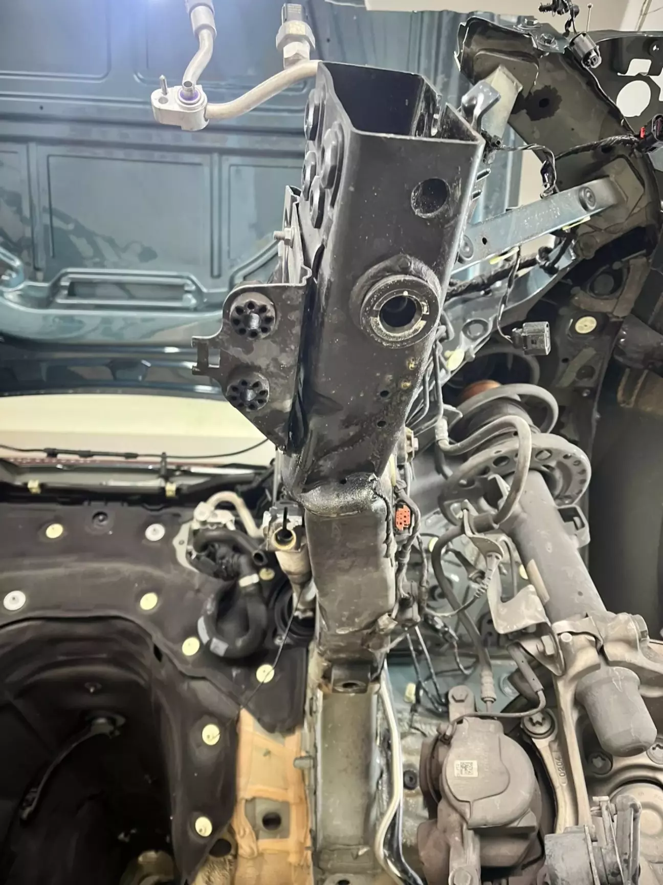 Морду розібрали, принципі із не приємного це лонжерон, в іншому без глобальних вкладень касета радіаторів ціла, всі рідини були на місці. Перед прибуттям машини було також придбано новий піропатрон щоб запустити запишу і перевірити стан двс, там все добре )
