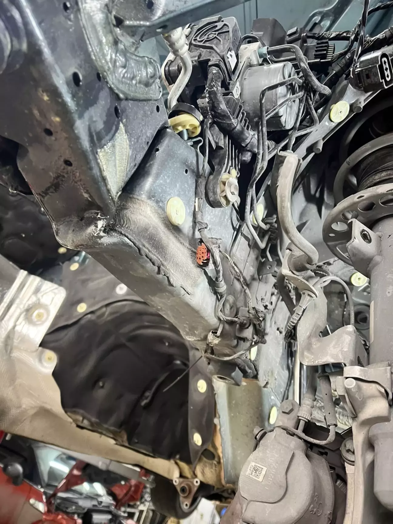мотор демонтовано, Лонж придбано новий оригінал 200уе, ще з не приємного було це підрамник передній його деформувало в результаті удару. По карфаксу удар був в бетонне огородження