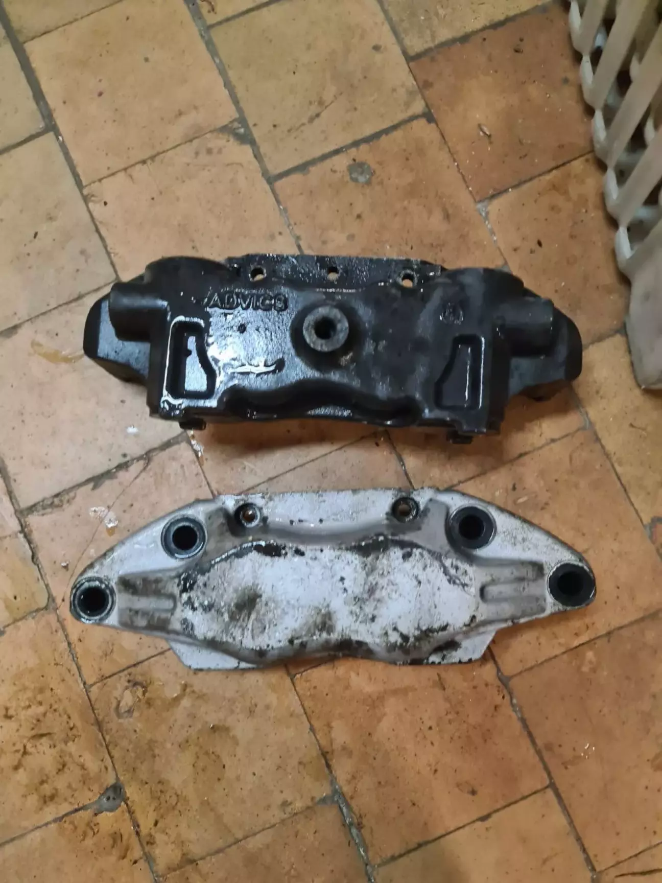 Колодки знайти оріг за норм ціну нереально, а під нові диски або навіть проточені треба тільки нові колодки, купувати TRW я не захотів хоча ціна адекватна. А випадково знайшов кераміку від PowerStop, вирішив не брати спорт комплект на дані суппорта, а типу звичайні. Також знайшов людину яка продавала бу колодки TRW і в нього вже стояли такі як я купив, розповів що все ок, крім вологої погоди, поки не прогріються можуть трохи скрипіть, але гарно гальмують.