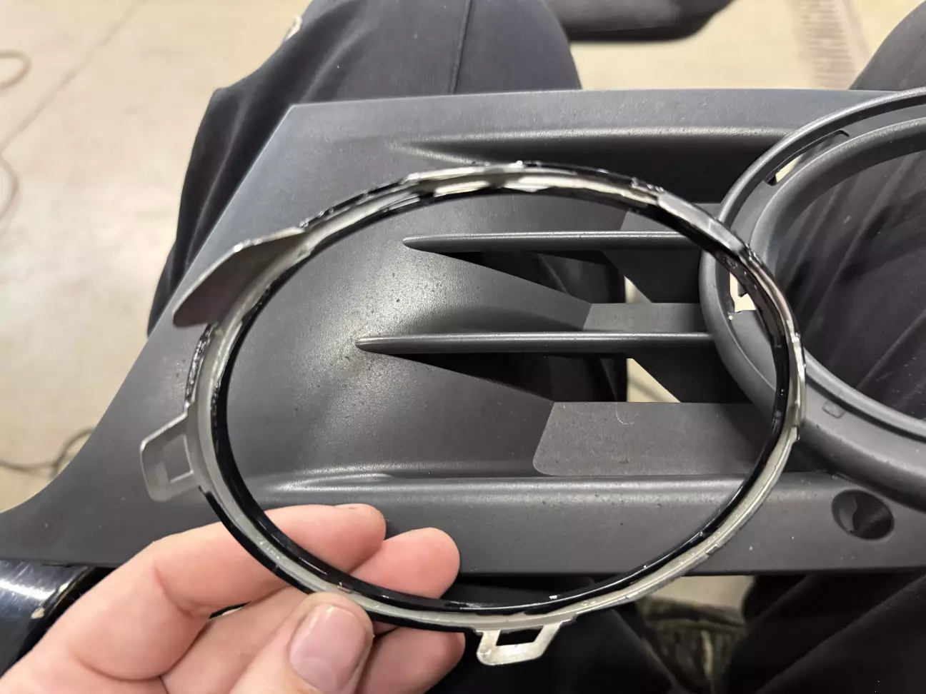 Так как я не особо любитель такой муторной работы, отложил до лучшего настроения оклейку последних элементов, это накладки на туманки