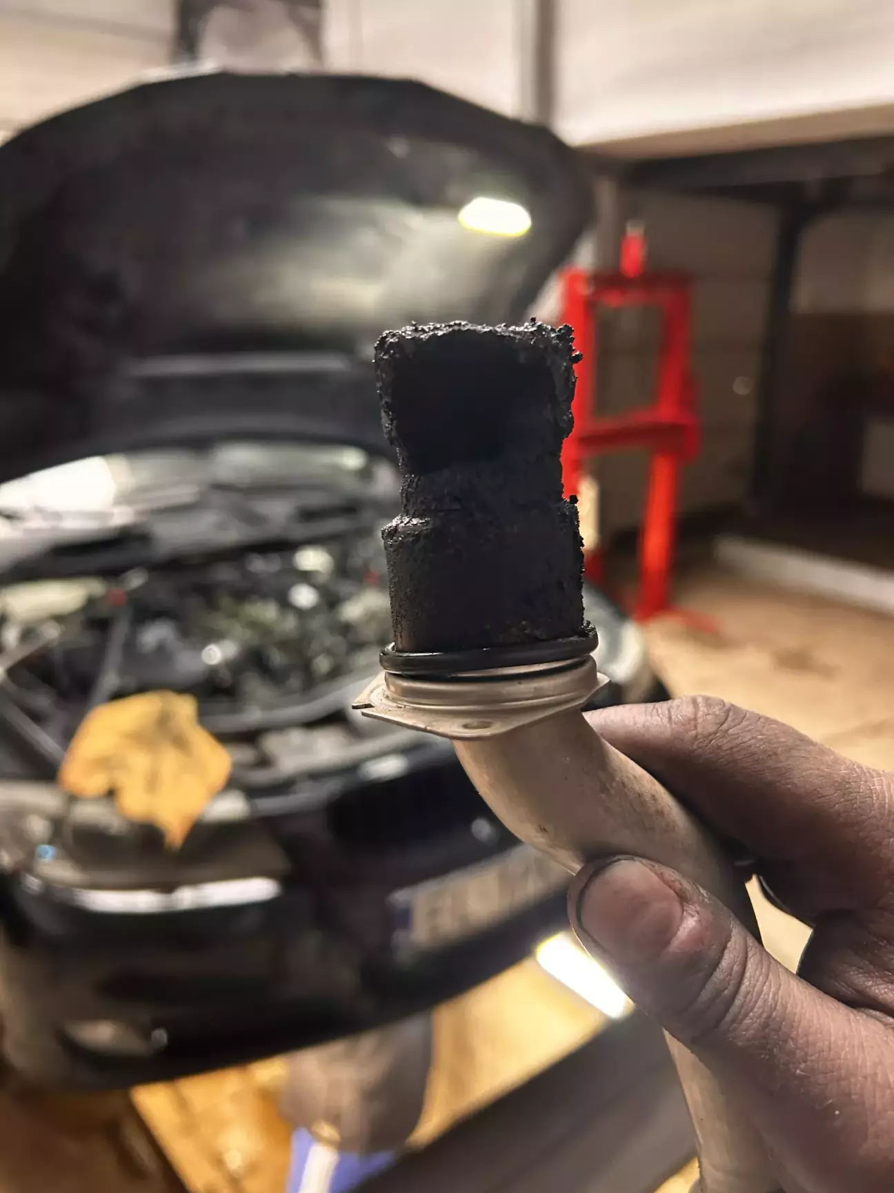 Впускні канали не так щоб сильно були засрані, але трохи нагару все ж є, але не смертельно. Найбільший шок був від трубки егр яка входить в впуск. Там був суцільний корок.