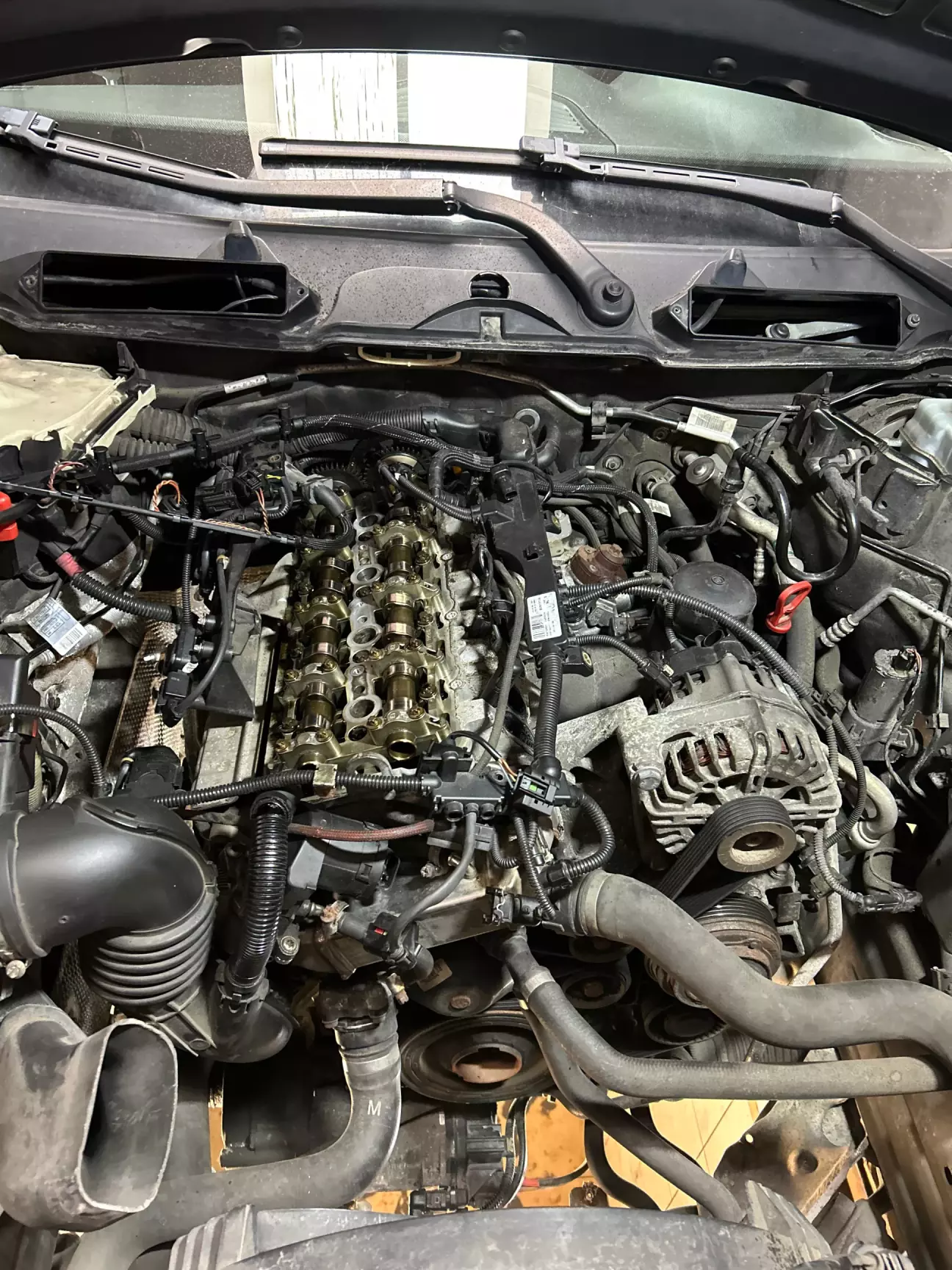 Наступним кроком був демонтаж кришки клапанів, бо дістатись до верхніх болтів акпп можна тільки знявши кришку. З матюками кришка знялась. Дуже сильно приклеїлася прокладка, ледь відірвав. Але щоб зняти кришку довелось зняти і впускний колектор.