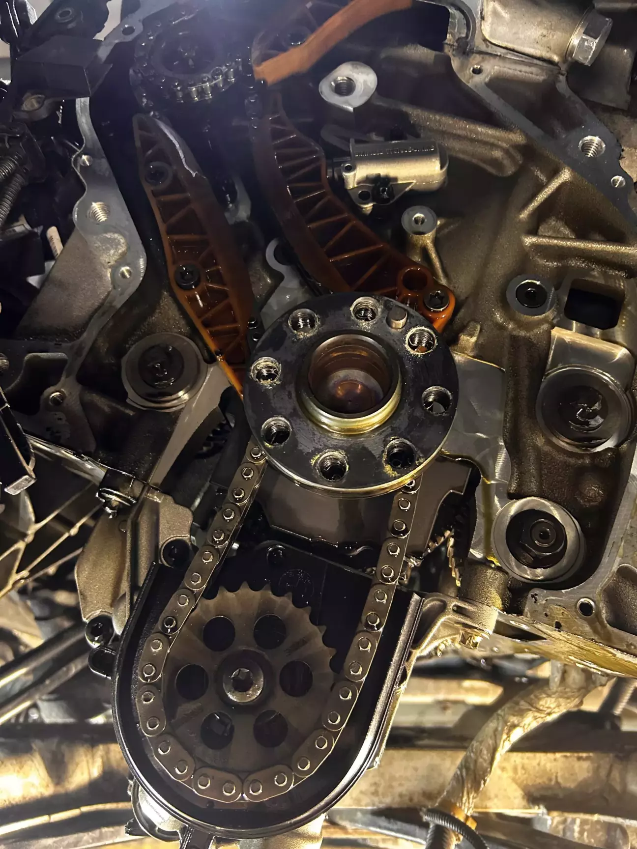 Найбільше мороку було з болтами піддону. Дістатись їх та ще задача. Треба два, а деколи і три ліктя в руках, бо просто так не підлізеш. Але за пару годин і цю перешкоду подолано. Далі трохи возився з кришкою грм і все, ланцюги на долоні.