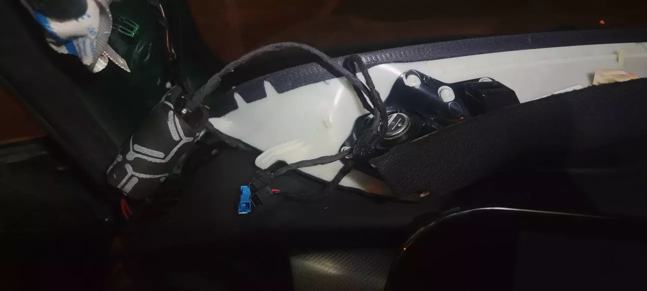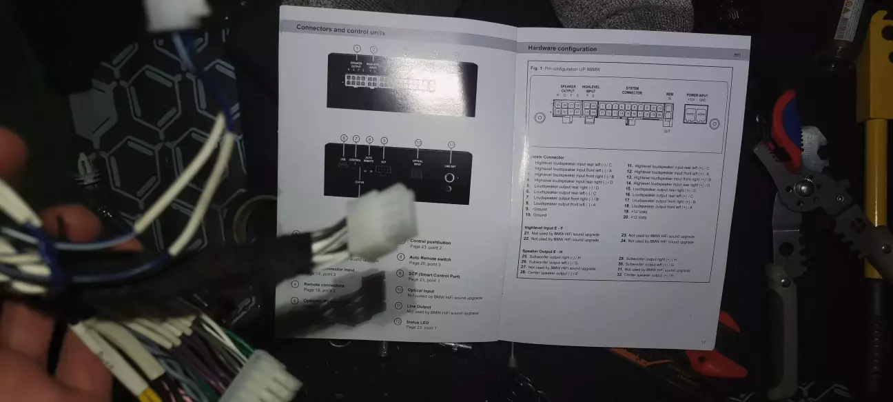 Позаду все переобжалось, далі рухаємось до стійок. Довелось поплясати з роз'ємами Helix, бо чомусь їм не хотілось використовувати плуг-енд-плей BMW роз'єми, та і ще на додаток вони замість мами вкорячили на динамік папу. Довелось переобжати і замінити роз'ємчики і все тепер стало по заводу.