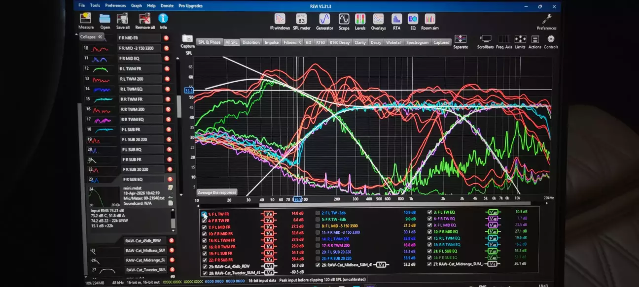 Залишу тільки одну ремарку, яка до мене дуже довго доходила через купу переглянутих відео - частота зрізу в DSP (електричний кросовер) і фактична крива АЧХ (акустичний кросовер) - це не одне і те ж. Тому головне - що ми маємо на АЧХ, а не в DSP. Також, не треба гнути через коліно динаміки і заставляти грати їх там, де вони не можуть. В кожного динаміка є природній спад і наша задача - зрізом і еквалайзером заставити його грати там, де його роль в ансамблі.