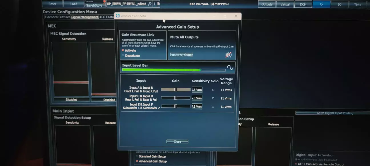 Починати треба з перевірки і узгодження рівнів підсилювача і голови. На цьому етапі потрібно вимкнути всі виходи в DSP і не вмикати.