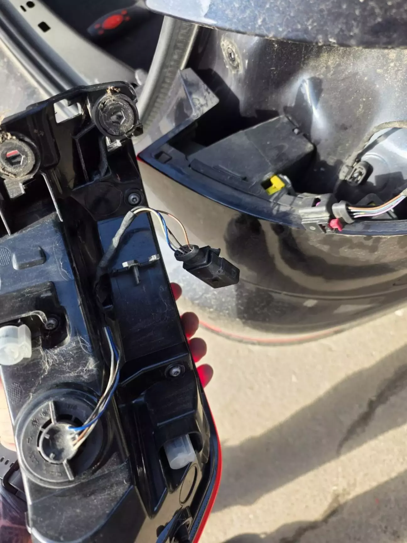 Катафот поки що не підключав, тільки вивів його шнурок до лівої фари. Бачив що їх впаюють до стопака без помилок з боку ком'пютера, бо цей катафот вже має з коробки правильний опір, який блок керування правильно інтерпретує під час опитування. Але це ще треба все перевірити, потім.