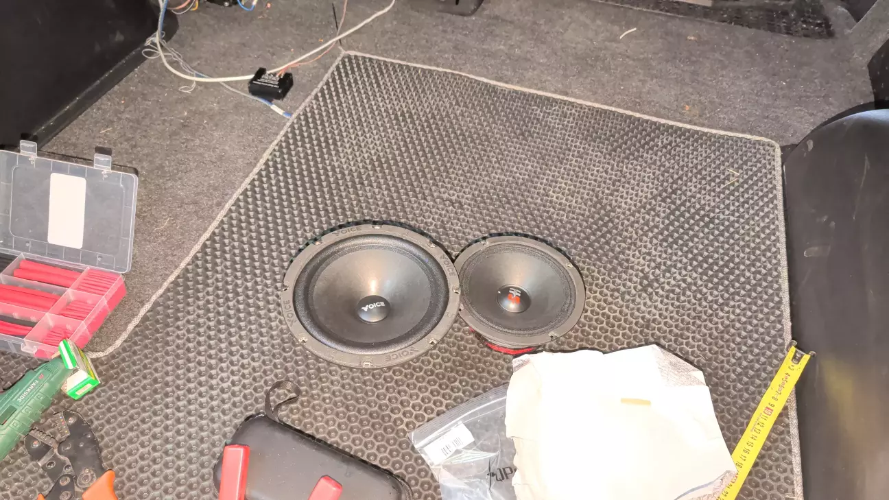 Розмістив зверху мідбас , знизу ширикосмужку. Так, знаю, не пофеншую, але посадкової глибини було мало в лівій дверці через виштамповку під номер. А проставку ( прототип якої я вже роздрукував) мені не хотілося.