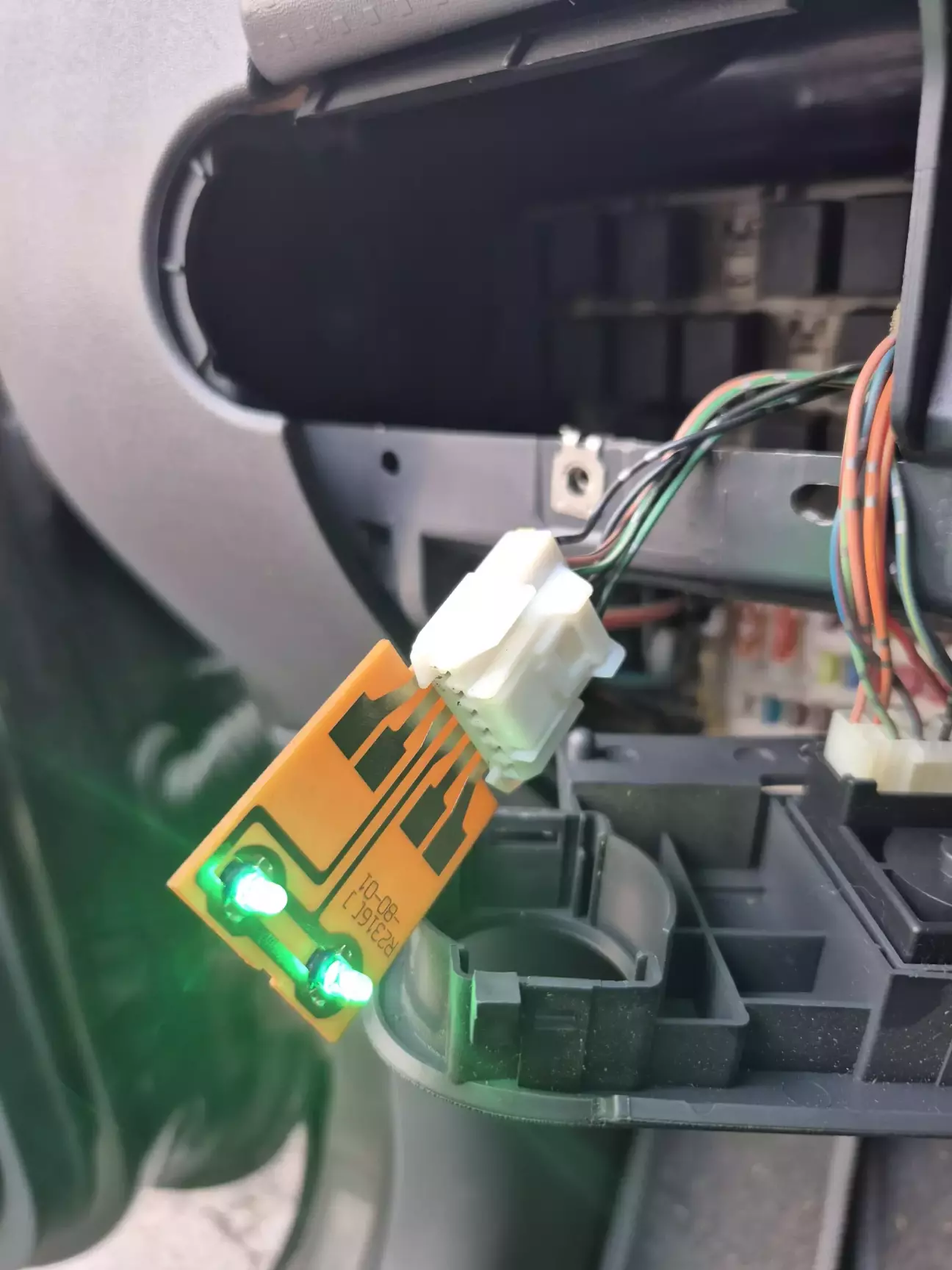 Надіваємо на діоди зелені "шапочки" які були на штатних лампочках (аби не так яскраво світили), збираємо до купи та насолоджуємось результатом в темну пору доби.