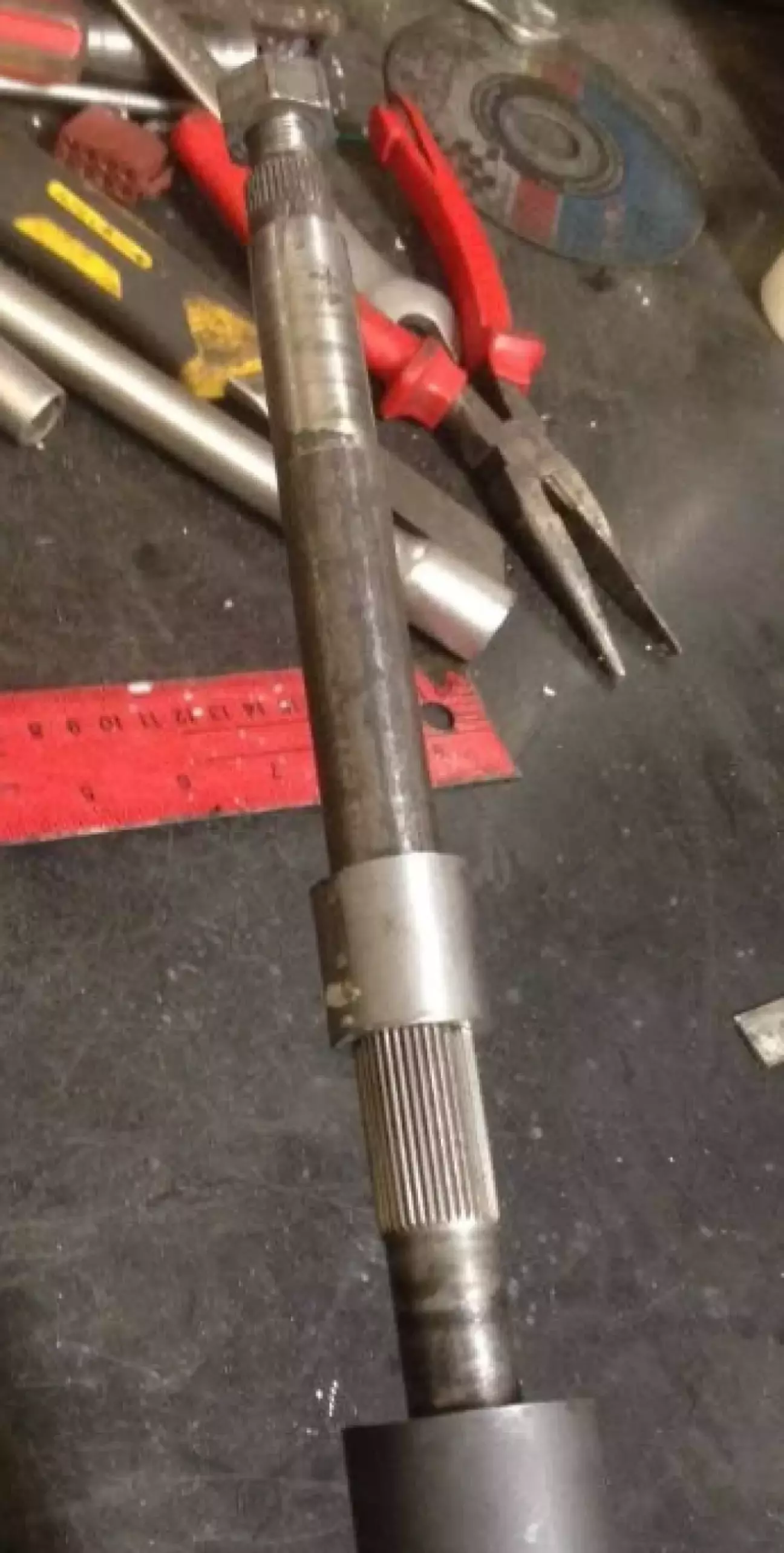 Також використав частину кермового валу з виточкою для блокування замком запалювання опеля як стабілізаційну втулку. Там немає в середині шліців і вона прекрасно стає в середину зовнішньогокорпусу підсилювача, додаю фото для розуміння.