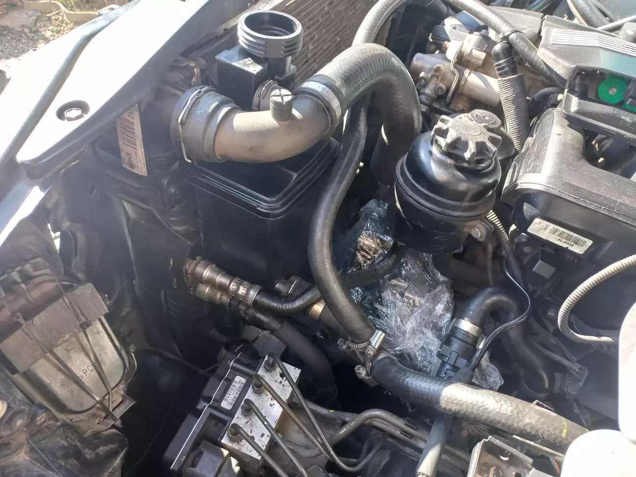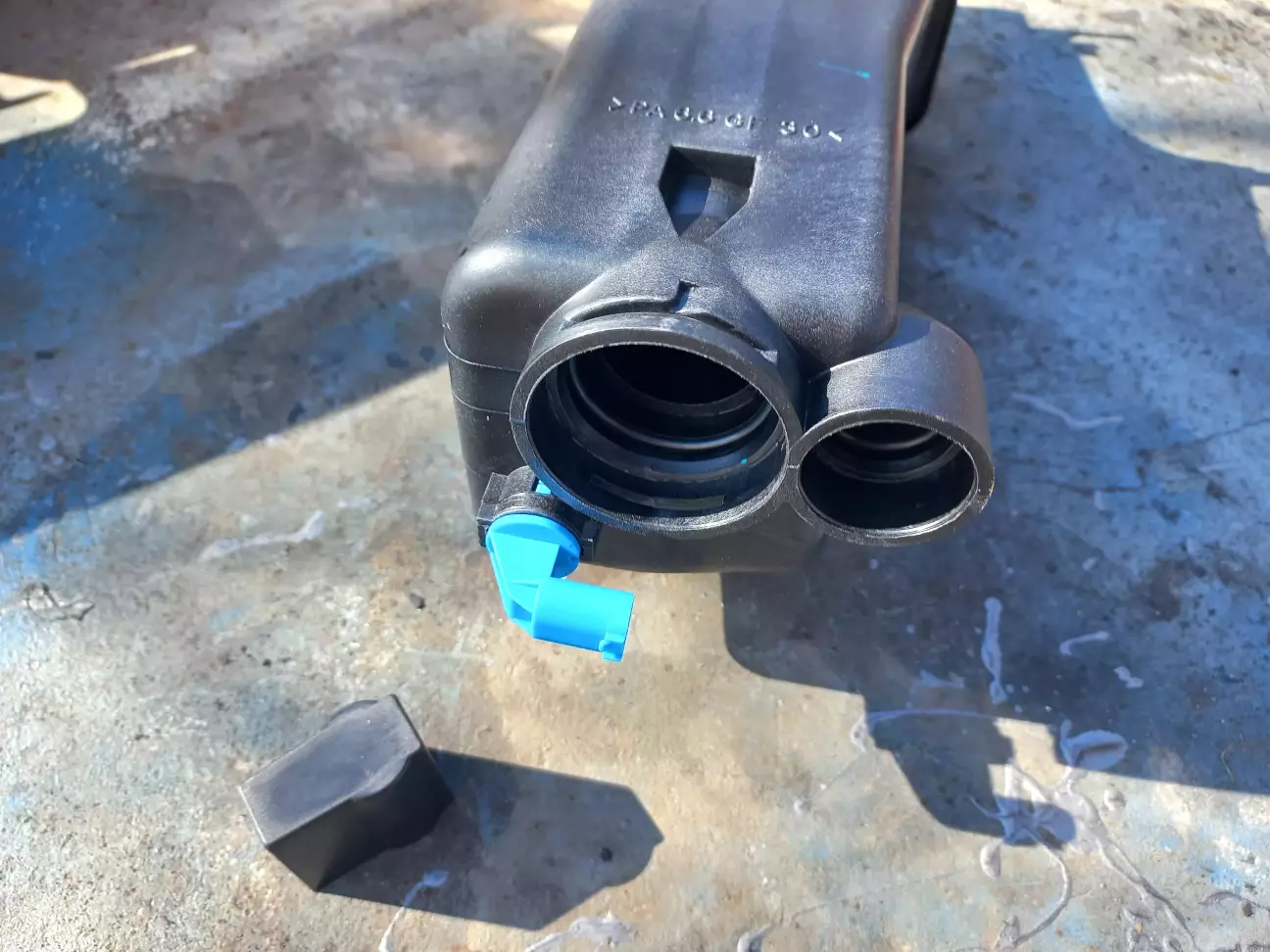 Закручуємо болт в отвір для прокачки та встановлюємо нову пробку бачка. Я встановив оригінальну пробку BMW. Комплектна з NISSENS буде про запас. Збираємо все, що було знято - повітропроводи, корпус фільтра, дифузор, крильчатку та повітрозабірник.