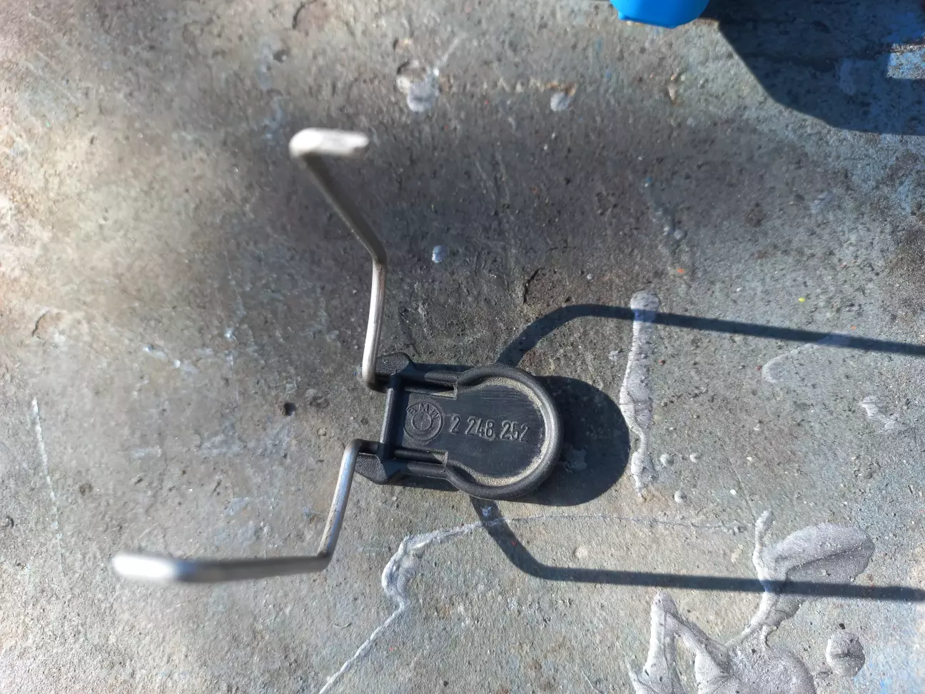 Знімаємо нижню фіксуючу скобі зі старого бачка - судячи по номеру, вона залишилася ще з оригінального бачка BMW.