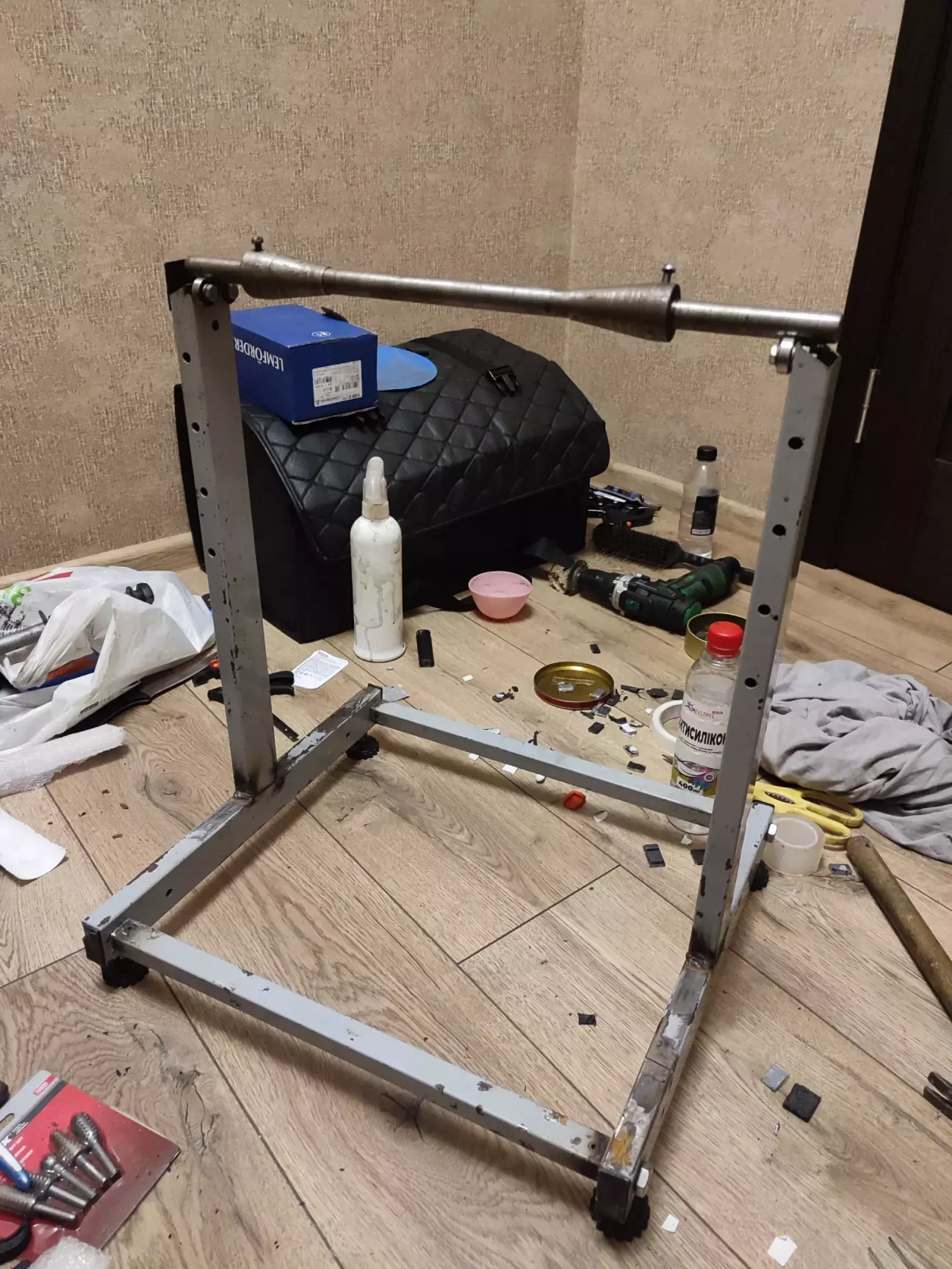 Балансую приблудою яку зробив років 15 тому зі шкільного стулу, підшипників і токаря дуже низької кваліфікації який виточив мені два конуси за пачку цигарок.
