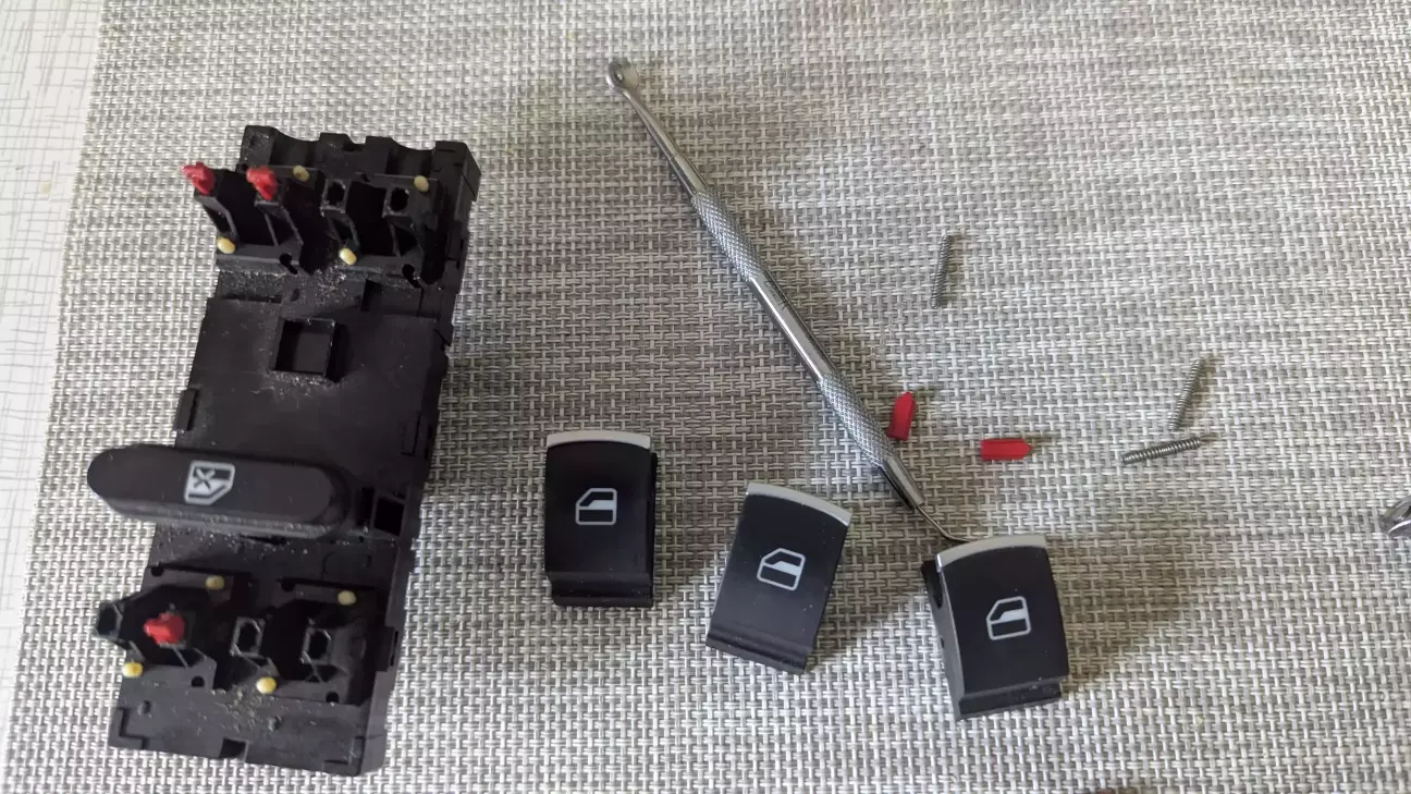 Замінив зламані кнопки, на заміну взяв з донорського пульта від мого Тігуана. "Чому не з Алі?" Хром на алішних кнопках пластмассовий та яскравий, в оріге матовий срібний.
