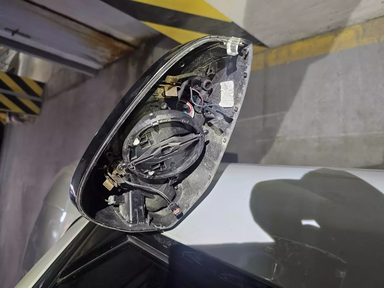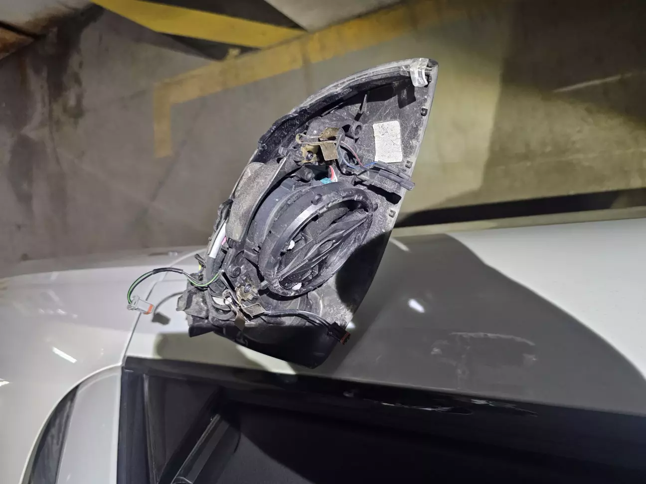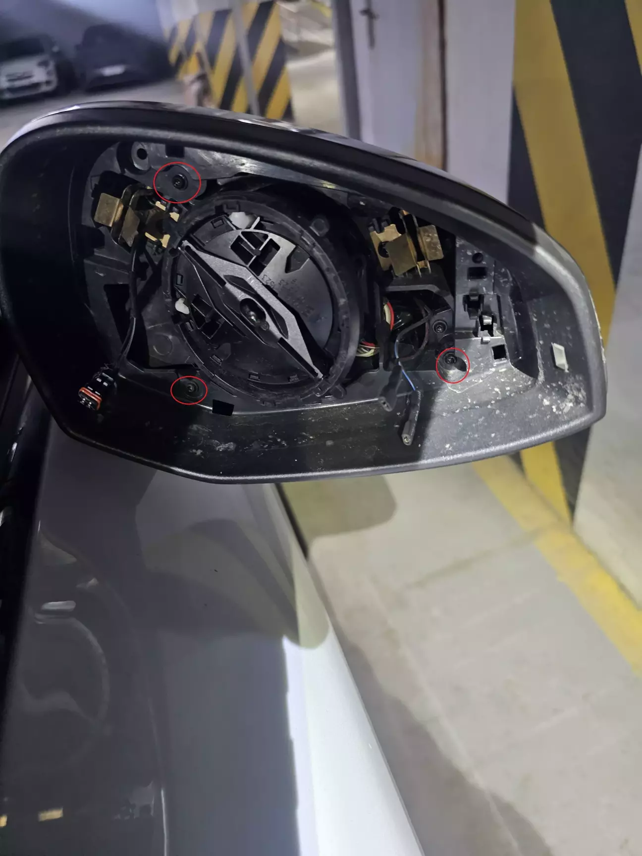 5. отщёлкиваем и снимаем крышку зеркала. потом отключаем разъём от неё.