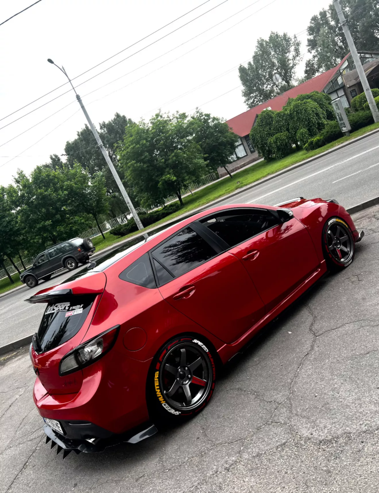 Подвернулась Advan AD08R. Резина жёсткая, греть её надо, но как только разогреешь — держак просто пушка 🚀. Для города, конечно, не совсем удобно, и пару лет спустя она ушаталась из-за умерших сайлентблоков.