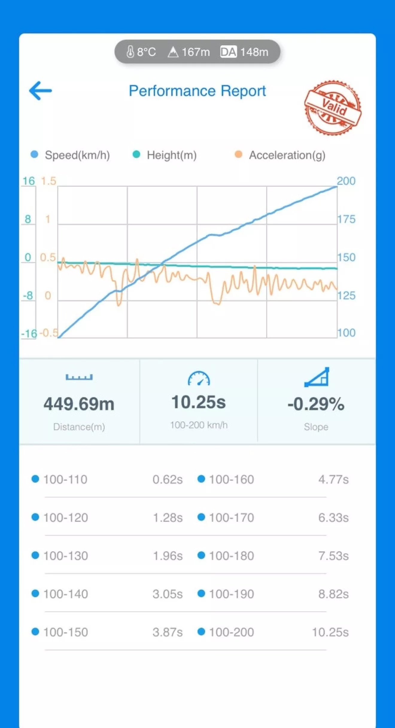 Времена стоковых авто 100-200 km/h