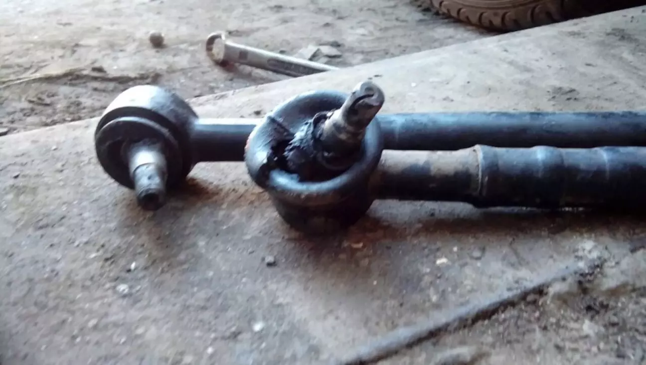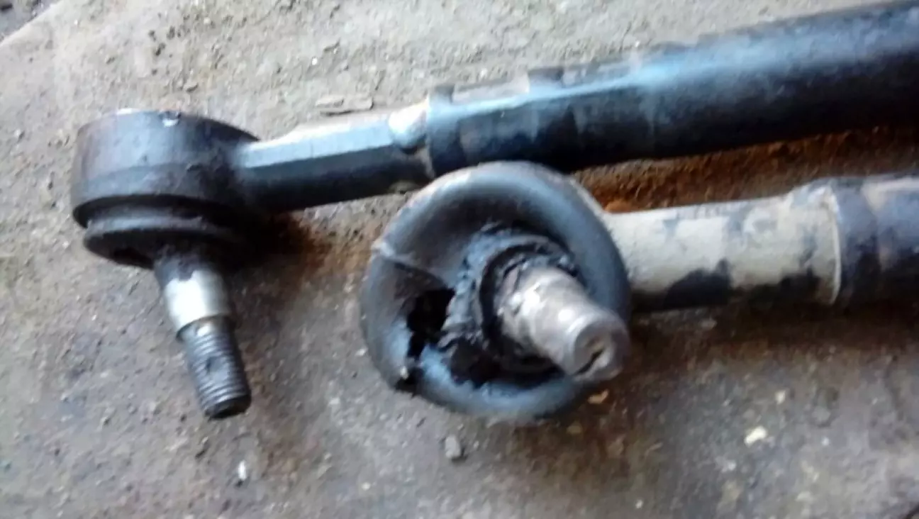 Боролся в общем я с вибрацией в руль, диагностика ходовой ничего не давала, так же как и балансировка колес. Но вчера, когда я поднял машину на домкрат, для того чтобы долить масла в кпп, я увидел порваный пыльник на наконечнике. Сегодня нашёл наконечники новые в заначке. Провёл ревизию сайлентов на рулевых, вместо бочонков стоят сайленты с жигулей