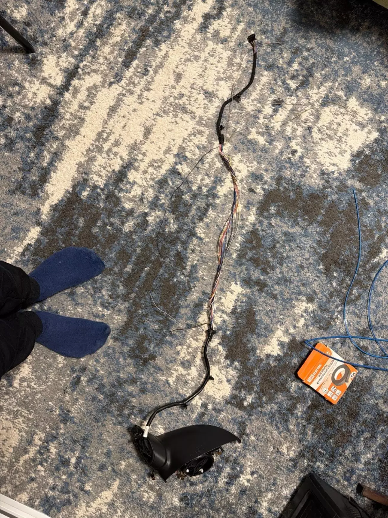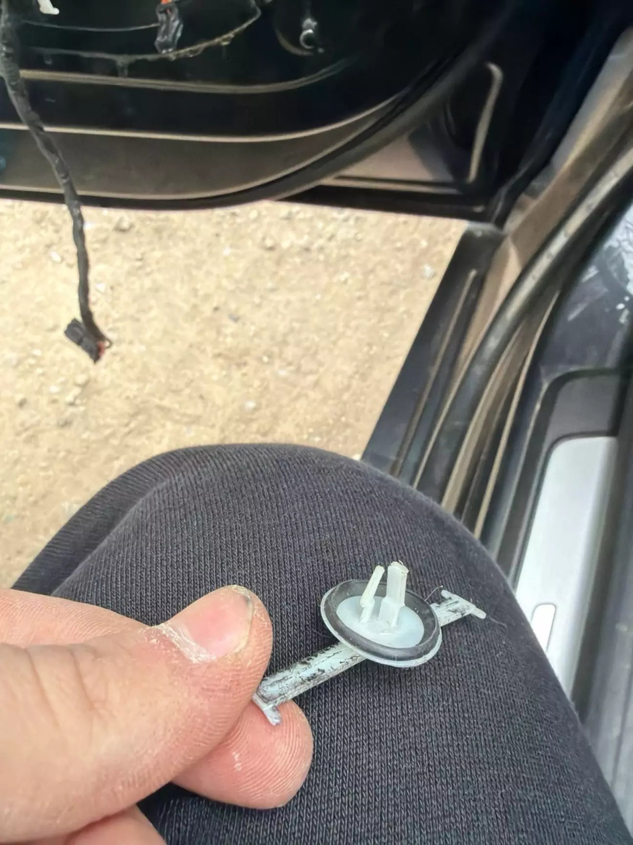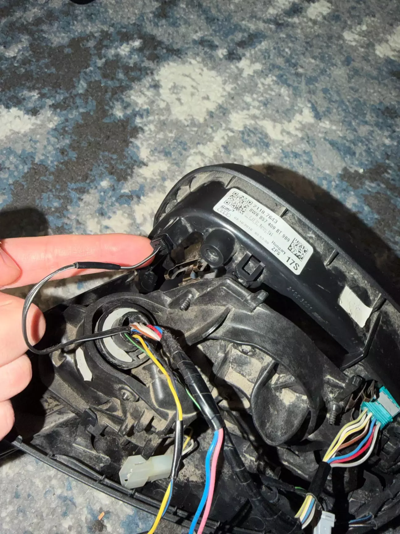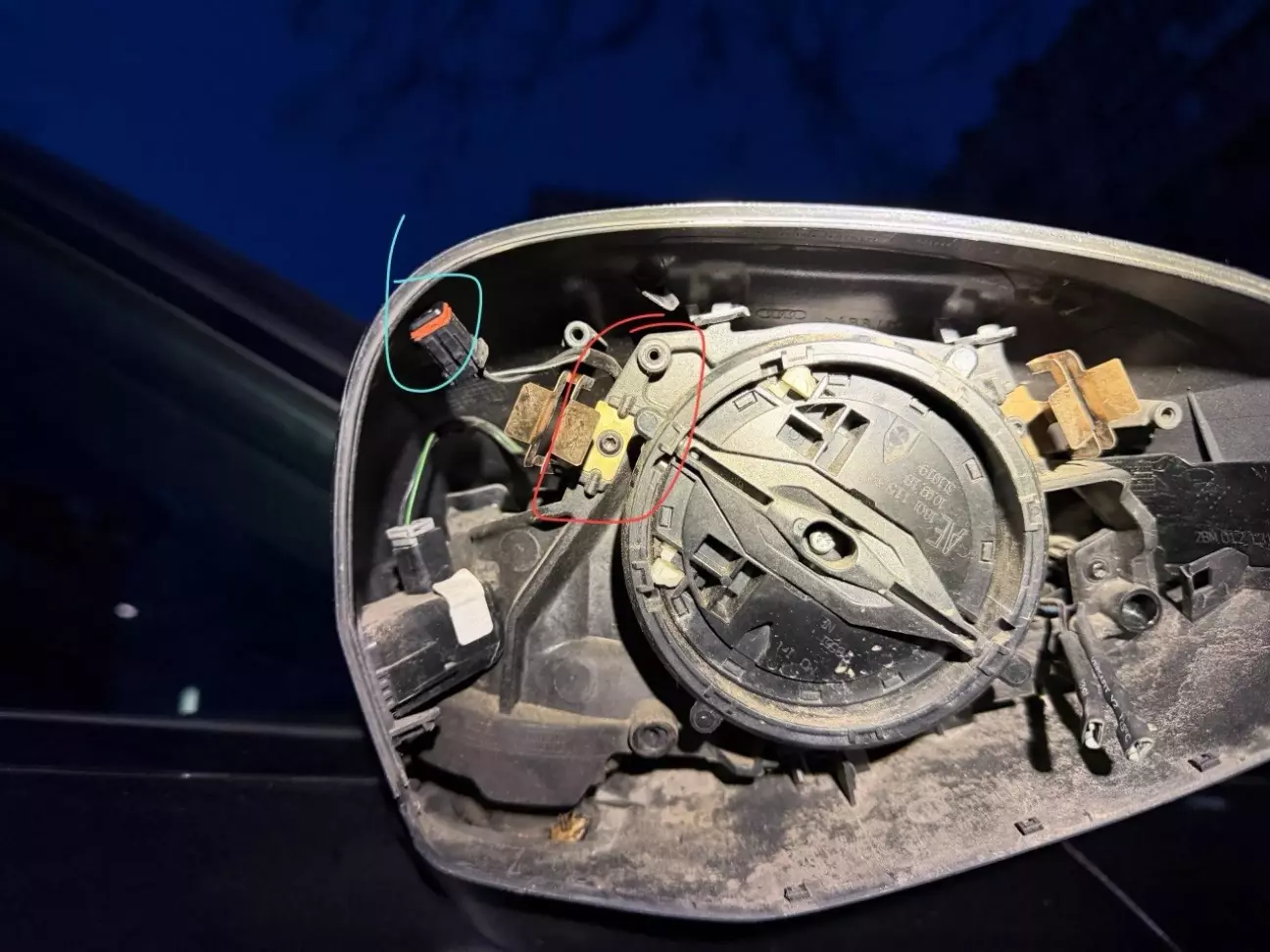 Для кращого розуміння повернувся додому і вирішив розібрати розбите дзеркало, бо йому вже нічого втрачати - і зрозуміти можливо вдастся витягнути і впихнути нову проводку без танців з пінуванням, СПОЙЛЕР - це неможливо, отвір на кронштейні дзеркала через який проходить провід занадто вузький для цього.