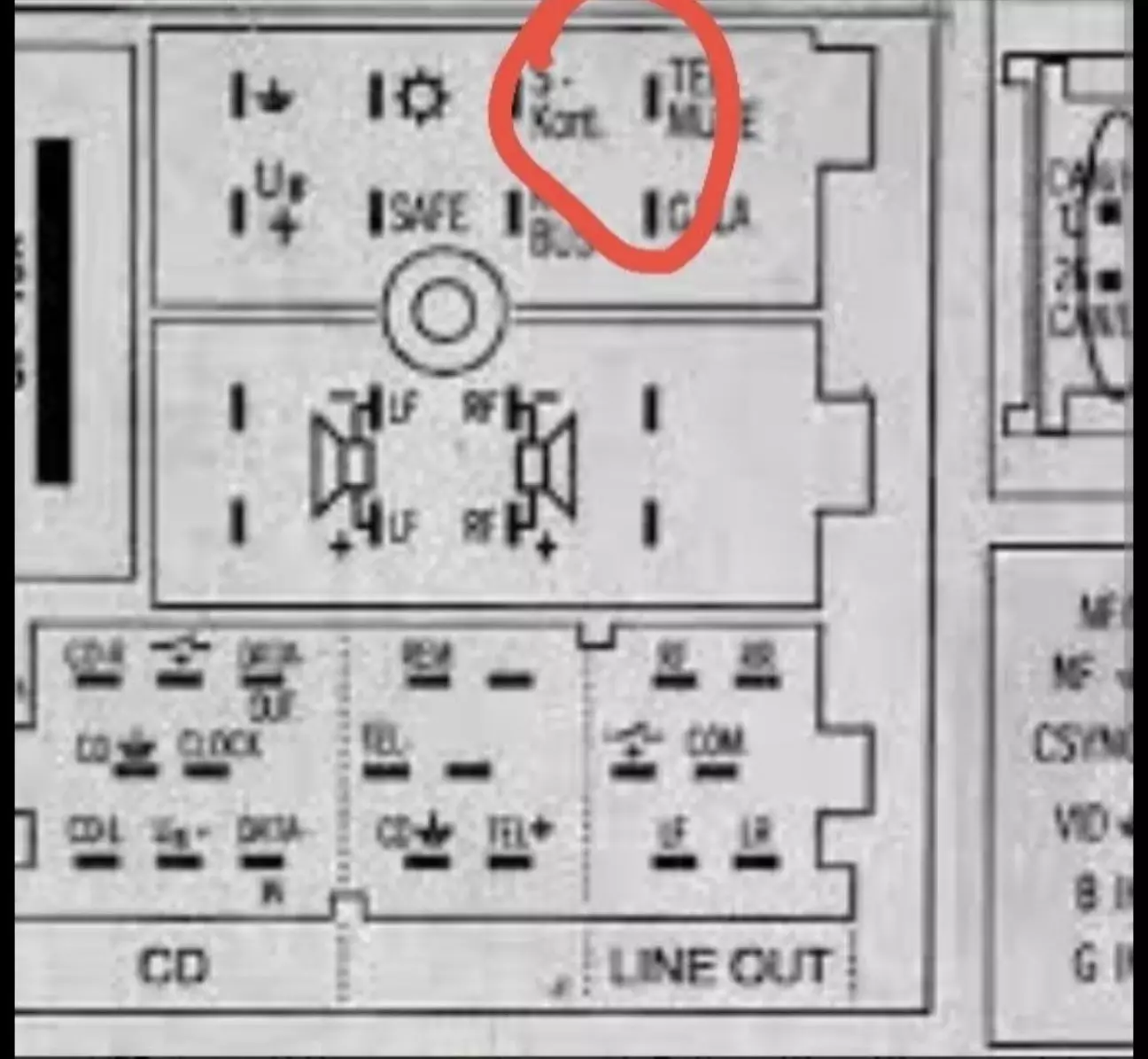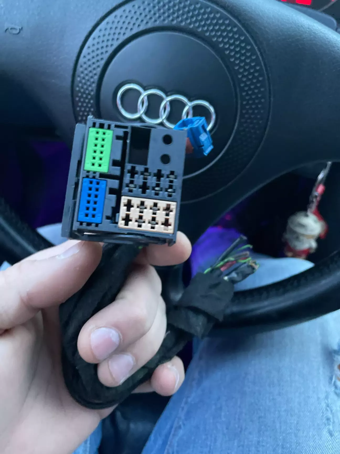 приізджаю додому і тут же на парковці, із старої фішки від RNS-D беру цей провід і підключаю на ACC емулятору! І о чудо, мафон працює по заводу. Вмикається від запалення і вимикається коли дістаю ключ.
