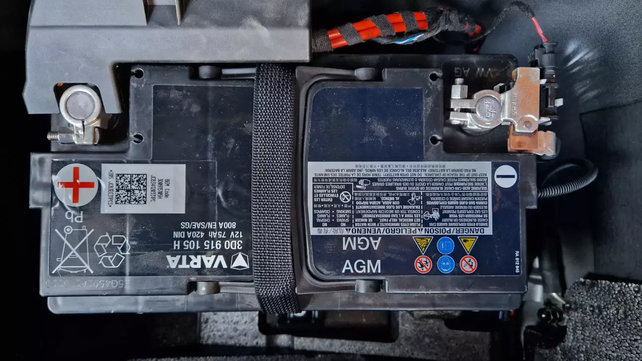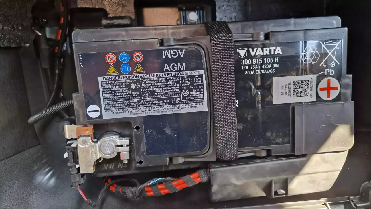 Купили кюху вже з посадженим акб, підзарядка йому не дуже допомагала, але машина заводилась без проблем, проблема була в тому що напруга просідала вж до 12Вольт при вкл музики в авто, також вибивало помилку по акб (низкий заряд акб), хоча його заряджав. Так ось вирішив добратись до акб який знаходиться в багажнику, там стоїть акб Varta agm, на мінусовій клемі дата 2014рік+розшифровуючи серійний номер акб теж вказує що він 2014року....12років акб, рідний який ставився з заводу, рахую дуже чудовий результат)