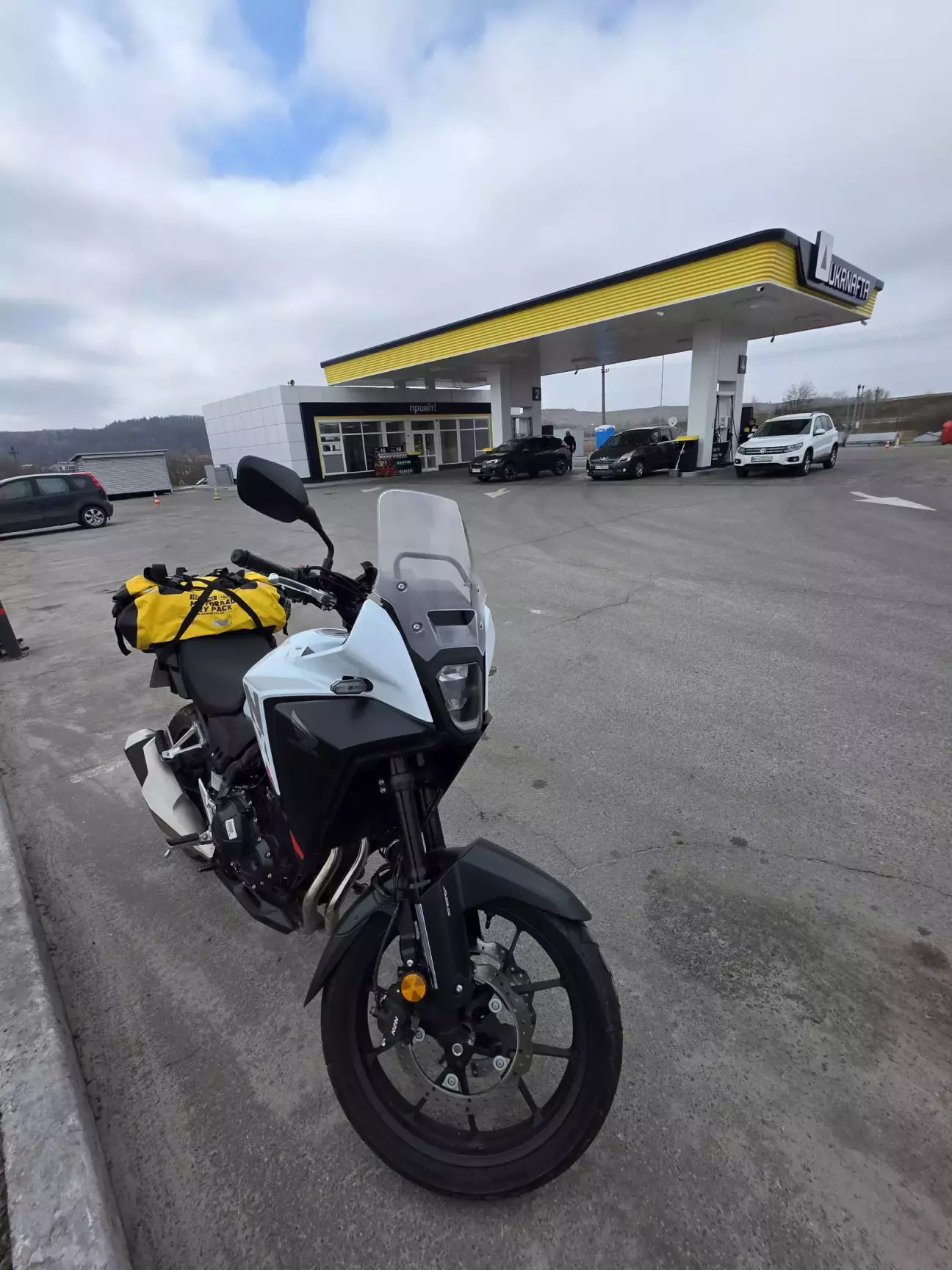После установки линзы и смены перчаток - все пошло веселее)) Прохват был 290км по разным дорогам ( а местами это дорогами назвать невозможно). Средний расход составил 3.6л как пишет книжка. В этот раз я заливал 95 Energy (решил попробовать), в баке было 3л Вога еще - т.е. почти все Укрнафта залилась. Расход, тяга - все в норме, труба выхлопная чистая (на ЮПЖ через 50км чёрной становилось что на Каве что на Хонде). В ходу перчатки конечно порешали - тепло (но не жарко), не дует и можно нормально управлять мотоциклом. Ветрозащита рук еще едет ко мне - скоро поставлю, также как и защиту радиатора.