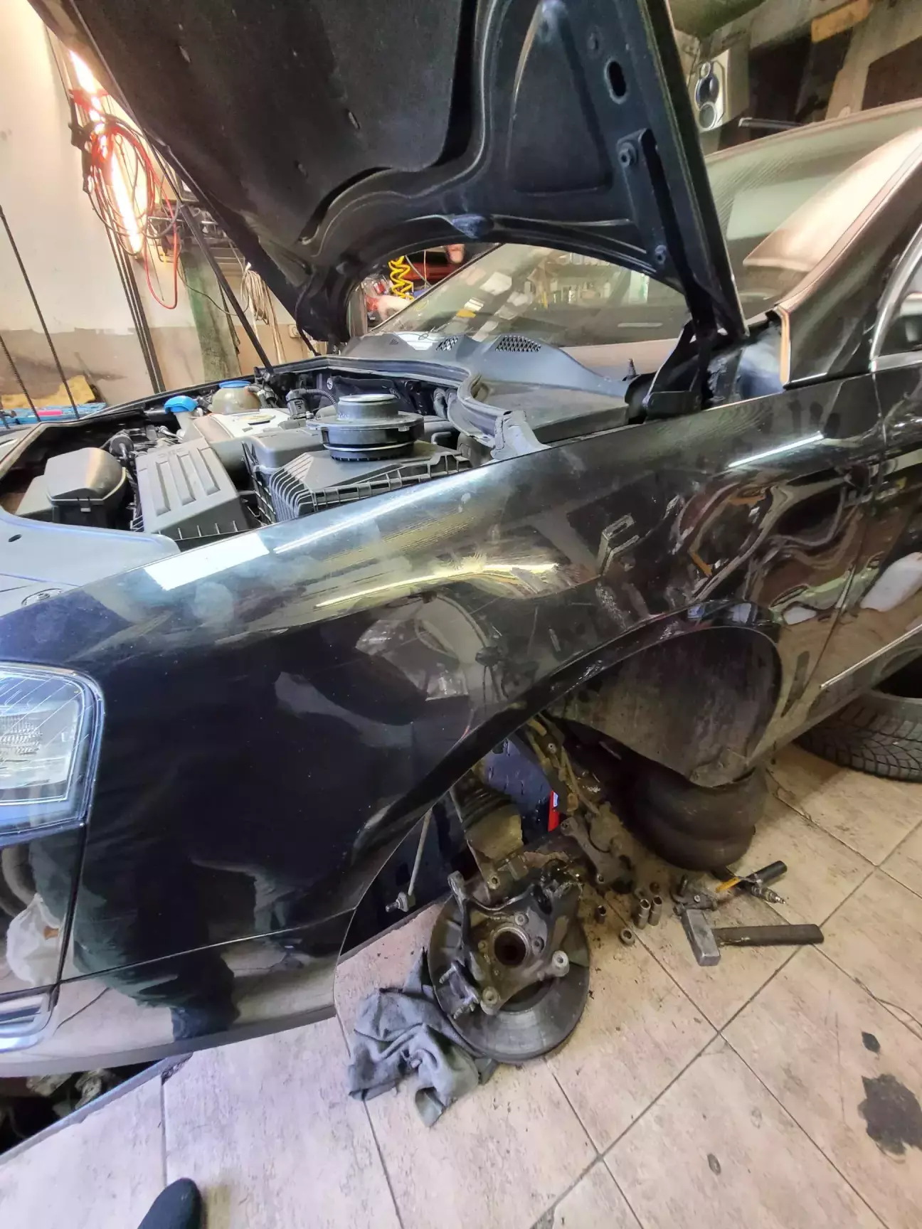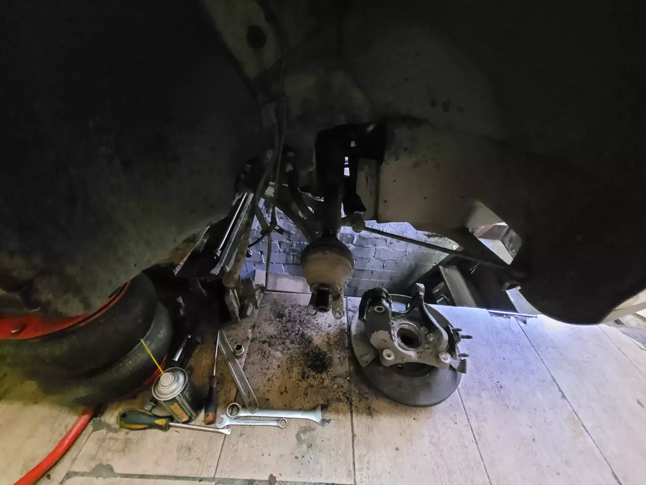 Заміна передніх амортизаторів відбійника і пильніка, заміна ремкомплект задніх супортів, задніх колодок і при розборі виявилось що один із моторчиків ручника з надломленим кріпленням треба міняти, потім з нашими дорогами десь поділось трошки передньої пружини 😄 теж заміна(поміняли пару) і це ще не все, вийшли з ладу стійки стабілізатора, а так ще був при переїзді нерівних ділянок дороги був скрип, як виявилось потреба в заміні сайлентблоков передніх ричагів