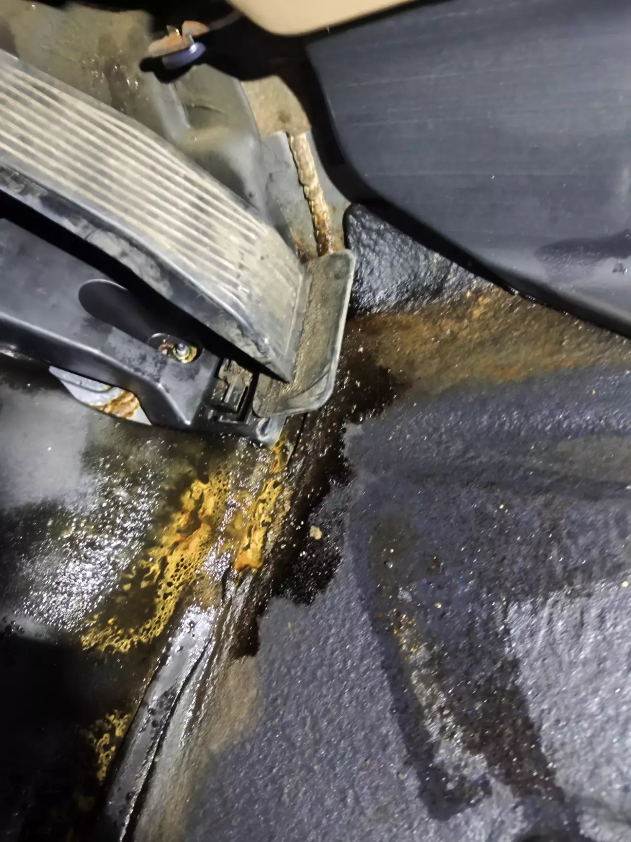 На ковроліні є плями рожевого кольору в районі ніг водія, пічка з водійської сторони дує холодним а в бачку немає антифризу, цікаво це якось пов'язано...))))