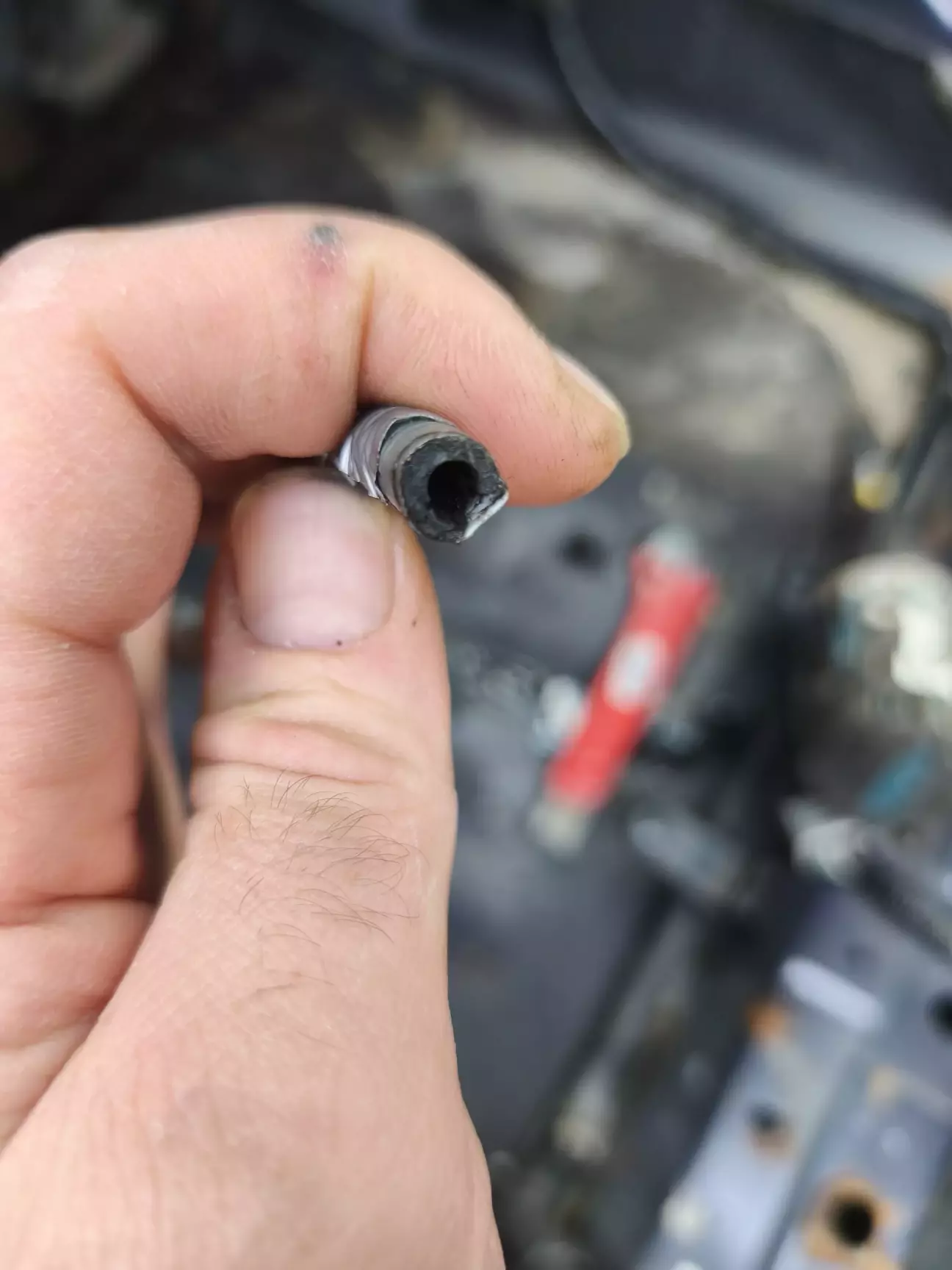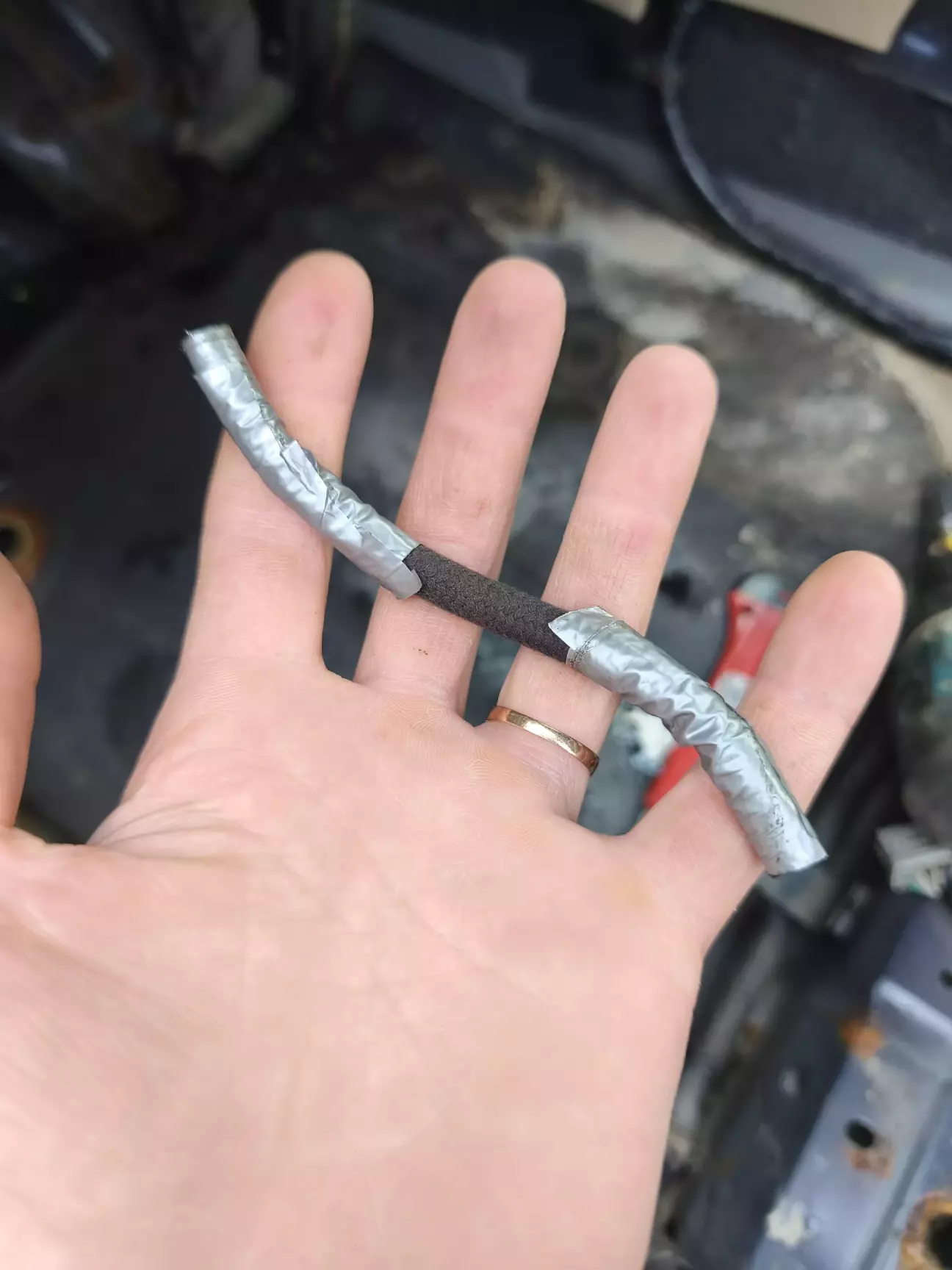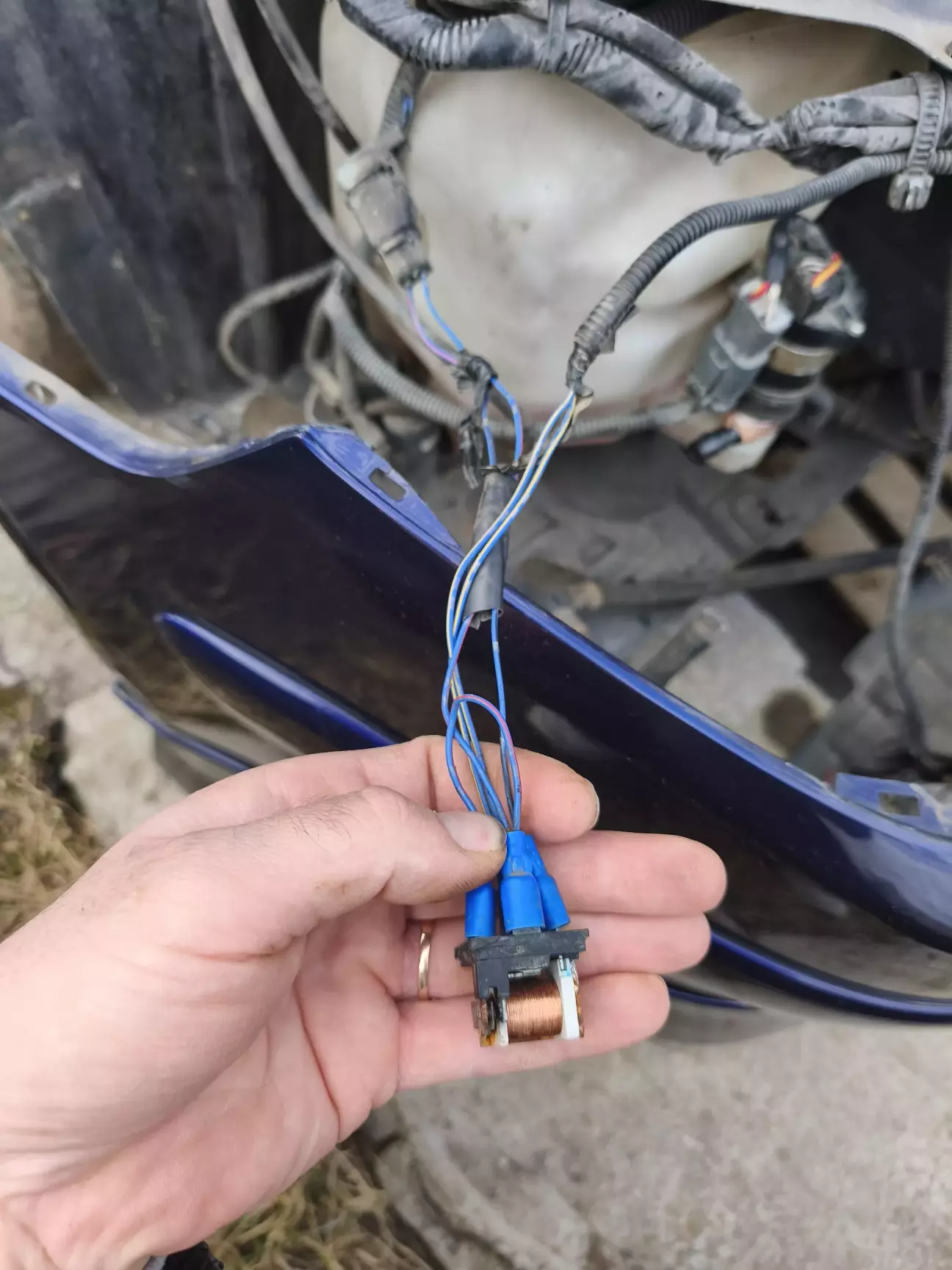 і я зрозумів чому не працюють туманки. Також відламаний штуцер насосу омивача фар, вклеїв на ебоксидку металеву трубку, зверху залишки штуцера армував все бинтом з аптечки,