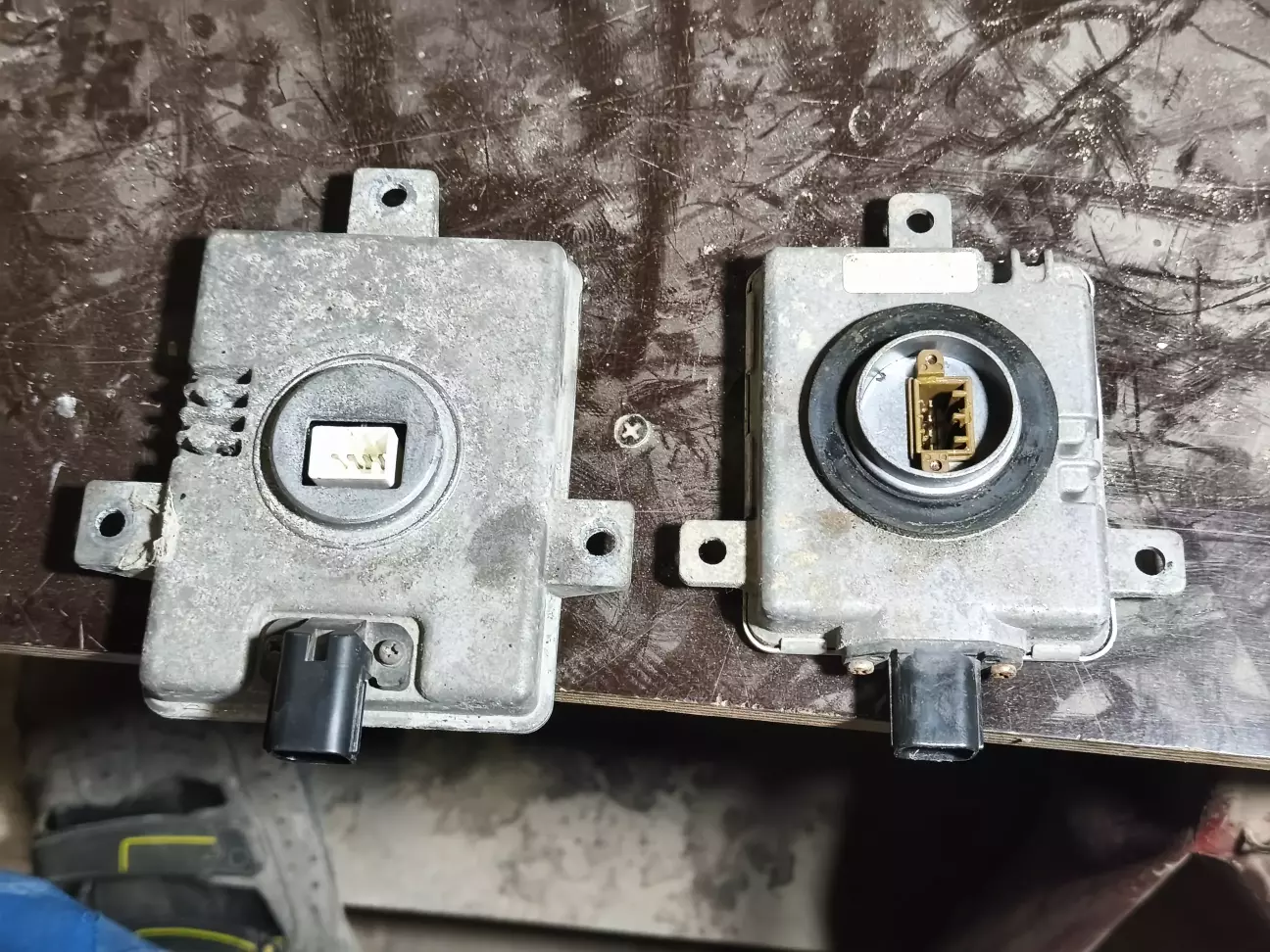 вони ще й з ксеноном - справ з ним раніше я не мав. Спочатку поліз в блок запобіжників, обидва згоріли, замінив але ж просто так вони не могли згоріти тому вирішив зняти фари та подивитись що до чого. Скинувши бампер з відламаними кріпленнями який тримався на чесному слові та зтяжках, зняв та розібрав фари, лінзи та отражатєль в нормальному стані що порадувало, зняв блоки ксенону, підключив на столі, один не робить, другий робить але димить) розібрав блоки картина не дуже обнадіюча,